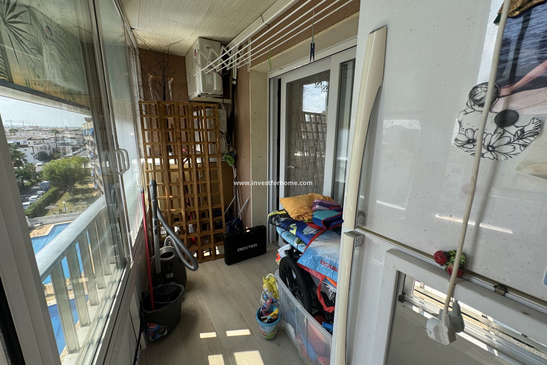 Ático en Rocío del Mar, Torrevieja. Ubicado a solo 200 m del mar, este luminoso ático en planta 6 ofrece 110 m² más una terraza acristalada de 12 m² orientada al sur. Dispone de 3 dormitorios (uno con salida a la terraza), 1 baño completo, 1 aseo, salón-comedor con aire acondicionado y ventilador, y cocina americana reformada con lavavajillas, lavadora y ventana exterior. La vivienda incluye puerta de seguridad, se vende amueblada y cuenta con ascensor, piscina y aparcamiento comunitario. Situado en la tranquila urbanización de Rocío del Mar, con todos los servicios a su alcance y excelente conexión por carretera. Características destacadas: 3 dormitorios y 2 baños (1 completo + 1 aseo) 110 m² construidos + terraza acristalada de 12 m² Orientación sur Cocina americana reformada con electrodomésticos Salón-comedor con A/C y ventilador Aire acondicionado adicional en el pasillo Amueblado y equipado Puerta de seguridad Aparcamiento comunitario Piscina comunitaria Edificio con ascensor Ubicación: A 200 m del mar Zona residencial tranquila y consolidada Cerca de supermercados, restaurantes, hospitales y centros comerciales (La Zenia Boulevard) Fácil acceso a N-332 y AP-7 Próximo a playas con bandera azul, calas, campos de golf y zonas deportivas
