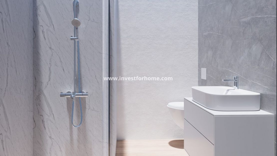 RESIDENCIAL DE OBRA NUEVA CONSTRUCCIÓN DE APARTAMENTOS BUNGALOW EN LOS BALCONES Residencial de nueva construcción en Los Balcones. El residencial consta de 136 apartamentos bungalow de lujo construidos con materiales de primera calidad. Cada uno de ellos tiene unas vistas mágicas a la Laguna Rosa de Torrevieja y al Mar Mediterráneo. Las viviendas tienen más de 131m2 distribuidos en un amplio salón-comedor con cocina americana, 2 amplios dormitorios y 2 baños completos. Puedes elegir entre bungalows de planta baja con sus 2 grandes terrazas privadas para disfrutar del clima de la Costa Blanca. O bungalows en primera planta de 178m2 con su solarium de 85m2 con vistas panorámicas a la Laguna Rosa y al Mar Mediterráneo El complejo ofrece idílicas zonas comunes ajardinadas con 3 zonas de piscina, zonas de jacuzzi, zona de fitness, pista de pádel, mini golf, zona infantil, punto de carga para vehículos eléctricos... ¡y mucho más! Sus instalaciones Premium y sus zonas verdes le permitirán disfrutar con su familia y amigos de los 320 días de sol que ofrece la Costa Blanca. Los Balcones se encuentra a las afueras de Torrevieja con todos los servicios accesibles, a sólo 5 minutos de la Playa de los Náufragos, de los supermercados, del colegio y del Centro Comercial La Zenia Boulevard, y a un minuto del Hospital Universitario de Torrevieja. Complejo situado a 40 minutos del aeropuerto de Alicante y a 1 hora del aeropuerto de Murcia - Corvera.