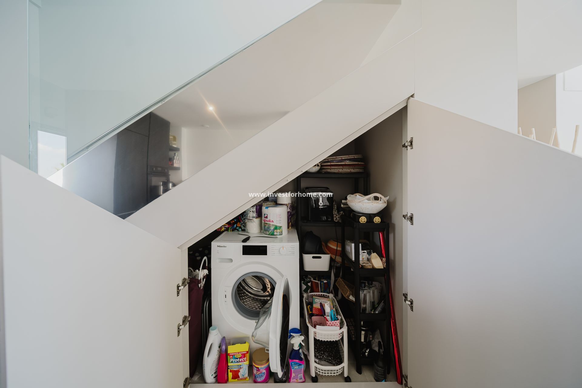 Villa semiadosada moderna con piscina privada en La Finca Golf, Algorfa. Situada en una exclusiva zona residencial dentro del campo de golf La Finca, esta villa semiadosada fue construida en 2024 sobre una parcela de 312 m², cuenta con 108 m² distribuidos en dos plantas. La vivienda ofrece 3 dormitorios (2 en planta baja y 1 en planta alta con terraza), 2 baños con suelo radiante, un amplio salón con techo de doble altura y cocina moderna totalmente equipada. En el exterior, dispone de jardín de fácil mantenimiento con riego automático, piscina privada de 24 m² (4×12 m) y aparcamiento dentro de la parcela. Equipada con aerotermia, paneles solares para agua caliente, persianas y toldos eléctricos, la villa se presenta en perfectas condiciones, orientada al suroeste y con abundante luz natural en todas las estancias. Características destacadas: 3 dormitorios (2 en planta baja) 2 baños con suelo radiante 108 m² construidos / parcela de 312 m² Piscina privada de 24 m² (4×6 m) Salón con techo de doble altura Cocina moderna amueblada y equipada Aerotermia y paneles solares Persianas y toldos eléctricos Jardín con riego automático y fácil mantenimiento Aparcamiento en parcela Orientación suroeste Año de construcción: 2024 La Finca Golf: Uno de los destinos de golf más exclusivos de la Costa Blanca Este campo de golf de campeonato de 18 hoyos y par 72 ofrece amplias calles, impecables greens, bunkers estratégicamente ubicados, elementos de agua, paisajes naturales impresionantes y vistas espectaculares. La experiencia de golf aquí es desafiante pero a la vez placentera para jugadores de todos los niveles. En La Finca descubrirás instalaciones de primer nivel, que incluyen un moderno centro deportivo y de fitness, pistas de pádel y tenis, y dos excepcionales opciones gastronómicas: un acogedor restaurante en la casa club y una exclusiva experiencia Wine & Dine. Características: Campo de golf de campeonato de 18 hoyos y par 72. Restaurante y bar en la casa club. Restaurante Frijolino, alta cocina fusión italo-mexicana. Centro de fitness, pistas de tenis y pádel. Hotel La Finca de 5 estrellas. Spa y piscina. Bodega La Finca para catas de vinos. Estación de carga para coches eléctricos. Distancias: Aeropuerto de Alicante: 55 km, 40 min. Centro comercial La Zenia Boulevard: 21 km, 20 min. Playa de Guardamar del Segura: 19 km, 20 min. Parque acuático Aquópolis Torrevieja: 19 km, 20 min. Hospital Universitario de Torrevieja: 18 km, 18 min.