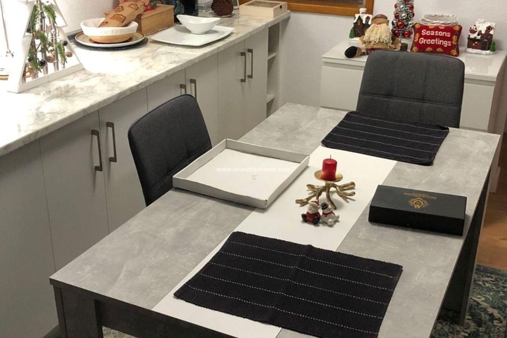 Propiedad orientada al Este, comprada en 2015 con muchas mejoras. ✅ Distribución: 4 dormitorios con armarios empotrados | 2 baños Salón-comedor en L, cocina equipada (electrodomésticos Bosch), 3 plantas + solárium, ping-pong, padel 20 m² de suelo radiante WiFi, 4 aires acondicionados, ventanas climalit, 4 persianas, mosquiteras Jardín en forma de L con 4 trasteros (dos de 2,4 m de alto), estatuas decorativas, 2 pérgolas retráctiles Oficina independiente con Ethernet ????️ 2 plazas de aparcamiento (una frente a la casa, otra a 30 m) ????♂️ Zonas comunes a 120 m: 2 piscinas, gimnasio exterior, pistas deportivas ????️ Supermercados, restaurantes y servicios a menos de 1 km ????️ Playas: 3–10 km | Lago salado: 1,5 km | Zenia Boulevard: 3 km ????️ AP-7: 1,5 km | N-332: 2,5 km ???? Comunidad: solo 315 €/año Se vende amueblada y equipada. Lista para entrar.