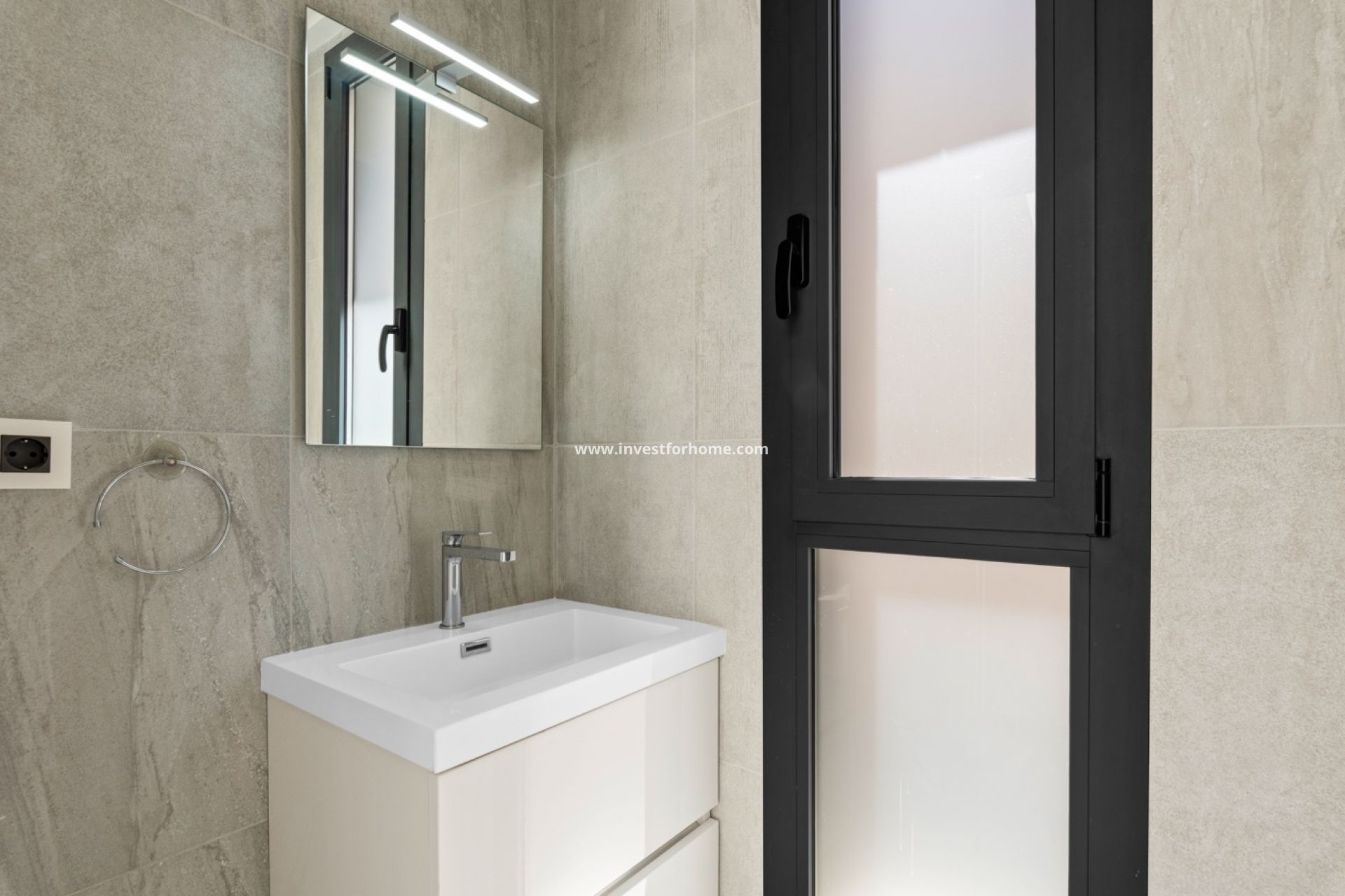Vivir en el lujo, una comunidad cerrada, hermosas vistas y una segunda casa de huéspedes en el sótano, perfecto para familias numerosas o hacer alquileres. Venga a ver esta casa recién terminada, prácticamente nueva en Altos de San Miguel de Salinas. Una hermosa villa independiente con piscina infinita, impresionantes vistas sobre el sky-line de Torrevieja y la Laguna Rosa, el lago salado de Torrevieja. Un verdadero punto de atracción para los amantes del espacio, el lujo y la tranquilidad. La propiedad se divide en dos niveles. A la planta baja se puede acceder por separado, pero también se puede combinar a través de un porche adicional. Planta baja; Al entrar, se pasa por delante de la casa hasta llegar al salón. Debido a las grandes ventanas, las vistas son inmediatamente sorprendentes. El amplio salón con cocina abierta está equipado con todo lo necesario. Caminando hacia la parte trasera de la casa, un aseo de invitados se encuentra aquí, con acceso opuesto al primer dormitorio con baño en-suite. En la parte trasera de la casa se encuentran los dos siguientes dormitorios con baño compartido. Nivel -1;A través de un segundo portal (compartido), también se puede acceder a la planta inferior. Esta planta también cuenta con una sala de estar con una espaciosa cocina americana que, de nuevo, está equipada con todo lo necesario. Esta planta también está equipada con dos dormitorios, uno con baño en-suite, y el otro con un espacioso vestidor. Gracias a varias entradas de luz natural, también hay luz natural más que suficiente en esta planta.Detalles:- Parcela; 260 m²;- Superficie habitable; 223 m²- Año de construcción; 2020- 5 dormitorios- 4 cuartos de baño;- Aseo para invitados;- Piscina infinita con impresionantes vistas- Aparcamiento privado;- Cocina y baño totalmente acabados;- Equipada con todos los electrodomésticos empotrados necesarios;- Totalmente amueblado.Impuesto sobre bienes inmuebles (IBI, estimación): € al añoComunidad: € al añoAceptación: en consultaEsta presentación es informativa y sin compromiso. No se derivan derechos de ninguna inexactitud.