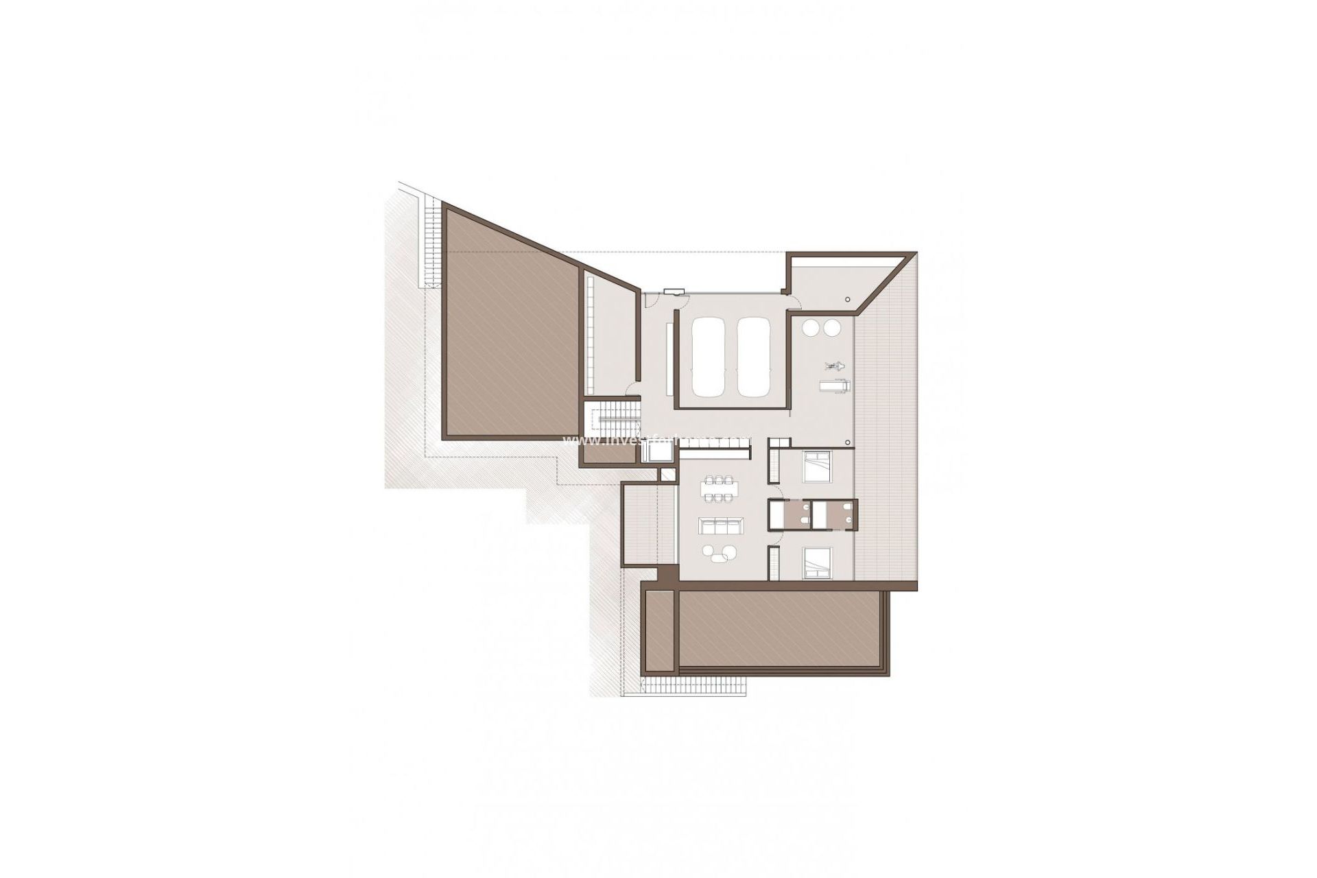 VILLA DE LUJO DE OBRA NUEVA CON VISTAS AL MAR EN MORAIRA Villa de lujo de obra nueva con vistas al mar en Moraira. La villa articula los espacios interiores a través de geometrías sencillas, puras y rotundas. Se accede a ella a través de una rampa y escaleras integradas en el terreno, apoyando la parte superior de la casa en un zócalo de piedra que da entrada a la vivienda. En la planta baja hay un garaje, un generoso vestíbulo de acceso junto a una gran bodega y un almacén y gimnasio. En la planta superior se encuentran las habitaciones principales de la casa, todas ellas con baño en suite y un gran espacio diáfano de más de 90m2 para albergar un espacio fluido de cocina comedor y salón en una vista panorámica de 180º del paisaje. Todo este espacio está rodeado por una amplia terraza, en cuya parte delantera cae un porche abierto de más de 50m2, proyectando hacia el exterior el interior de la casa y convirtiéndola en un espacio único. Una pieza geométrica única que proporciona unas impresionantes vistas del paisaje y que tiene de forma práctica y cuidada el programa y la funcionalidad del interior. La pureza geométrica y el diseño de la casa se traslada desde la composición arquitectónica hasta la ejecución del más mínimo detalle. Se han elegido soluciones técnicas y constructivas de última generación para trasladar a la vivienda las últimas novedades del mercado. Todo ello para conseguir una vivienda de lujo con las máximas prestaciones y con un diseño exquisito. Moraira es una pequeña ciudad con buenos restaurantes, bares y muchos supermercados alrededor. Hay una playa muy agradable justo al lado del pueblo que es ideal para las familias. El paseo marítimo ofrece unas vistas tremendas del Peñón de Ifach al otro lado de la bahía de Calpe. El camino de la costa de llegar allí es bien vale la pena hacer con algunas vistas espectaculares. Moraira situado a 1 hora 15 minutos al norte de la A7 desde el aeropuerto de Alicante es bastante fácil de llegar. Es aproximadamente la misma distancia o un poco menos al sur del aeropuerto de Valencia.