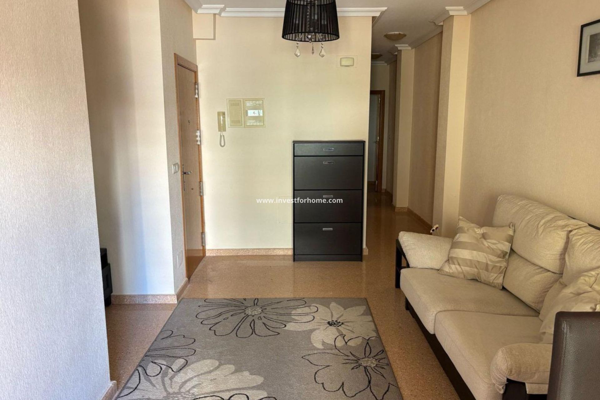 Bonito apartamento de 2 dormitorios con terraza y trastero en Torrevieja Este fantástico apartamento de 2 habitaciones, ubicado en una segunda planta exterior con ascensor, combina comodidad, calidad y una ubicación inmejorable en el corazón de Torrevieja. La vivienda cuenta con una superficie de 69,53 m² y se presenta en excelente estado, lista para entrar a vivir. Sus acabados cuidados en paredes, el mobiliario en muy buen estado y los baños modernos y bien mantenidos reflejan una propiedad bien conservada y pensada para el confort diario. Además, dispone de un práctico trastero. Su ubicación es, sin duda, uno de sus grandes atractivos. Situado en una de las zonas más demandadas de Torrevieja, permite disfrutar de un estilo de vida cómodo y mediterráneo. Rodeado de todos los servicios necesarios — supermercados, restaurantes, cafeterías, farmacias, mercado y transporte público — aquí no necesitas coche. Todo está a un paso, ideal tanto como residencia habitual, segunda vivienda o inversión segura. UBICACIÓN: Torrevieja se encuentra en la provincia de Alicante (Costa Blanca). Es famosa por su clima mediterráneo y su costa. No podemos olvidar sus paseos marítimos donde podemos encontrar algunos restaurantes a lo largo de las playas de arena fina. Además, cuenta con excelentes playas como la Playa de los Náufragos, la Playa de los Locos y la Playa de la Mata. Por lo tanto, se considera una localidad turística destacable donde el medio ambiente ocupa un lugar importante como reclamo turístico. Además, podemos encontrar numerosos centros comerciales (Habaneras, La Zenia Boulevard), campos de golf, centros deportivos, hospitales (como el Hospital Universitario de Torrevieja) y aeropuertos como el Aeropuerto de Alicante (a 35 km) y el Aeropuerto Internacional de la Región de Murcia (a 43 km). DISTANCIA AL MAR: 500m COMUNIDAD: 210 € IBI: 323 € Si tiene alguna pregunta, no dude en ponerse en contacto con nosotros!