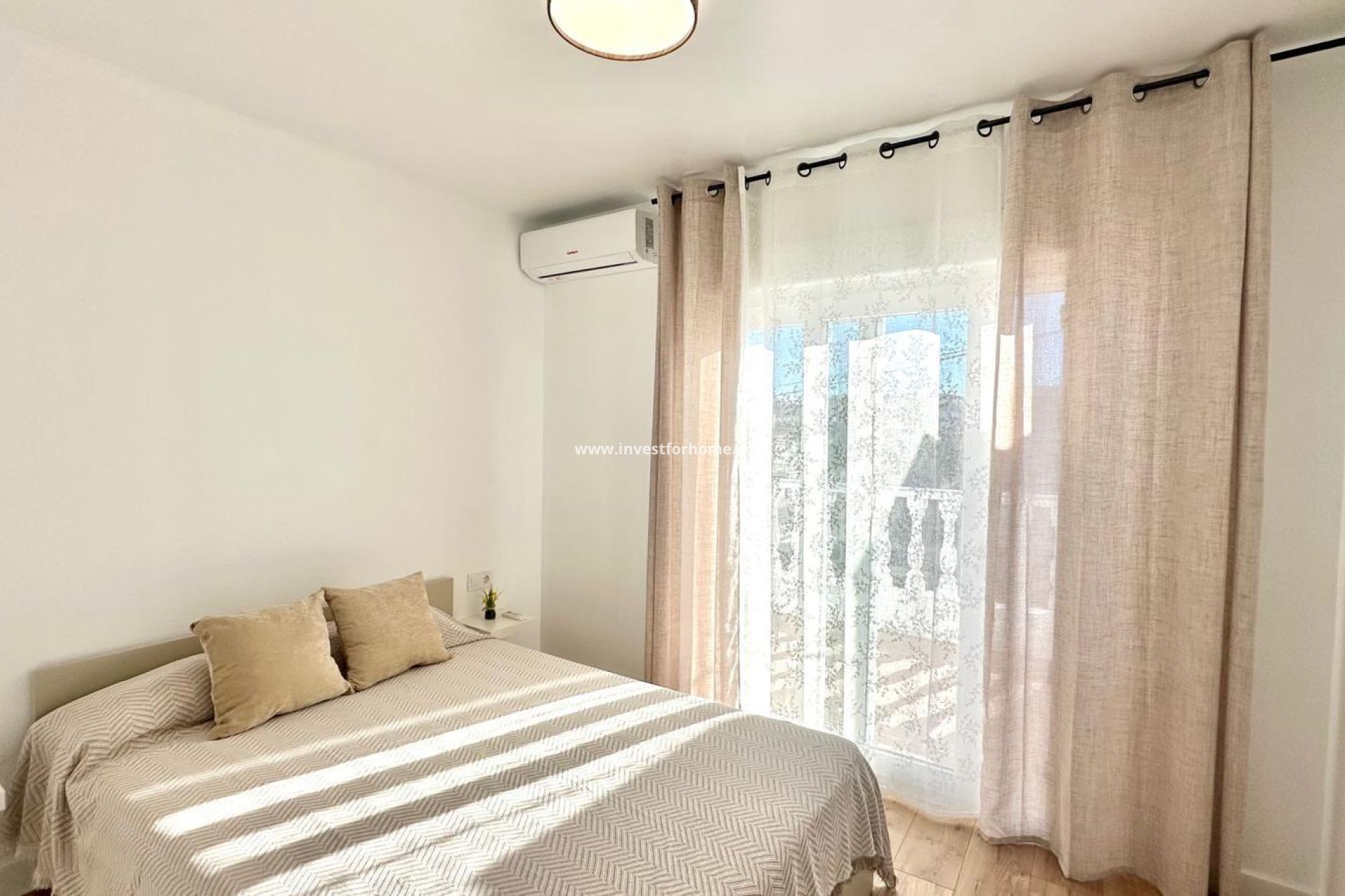 Ubicada en la Avenida París, en una zona residencial tranquila y bien comunicada, esta acogedora casa adosada se encuentra a tan solo un kilómetro y medio de la playa, combinando la cercanía al mar con la comodidad de vivir en un entorno más residencial. Es una opción ideal tanto para quienes buscan una vivienda habitual como para quienes desean una segunda residencia cerca de la costa. En la planta baja, la vivienda cuenta con un amplio y luminoso salón comedor, diseñado para ofrecer un espacio cómodo y funcional destinado al descanso y a la vida en familia. La cocina de estilo francés-americano, abierta y moderna, se integra perfectamente con la zona de día, creando una sensación de amplitud y favoreciendo la convivencia. Desde esta planta se accede a un patio trasero, un espacio exterior muy práctico para zona de lavandería, almacenamiento o para disfrutar de comidas al aire libre. Además, dispone de un dormitorio en la planta inferior y un aseo, lo que aporta comodidad adicional y resulta especialmente útil para invitados o personas con movilidad reducida. La vivienda también cuenta con un patio delantero, ideal como terraza privada, zona de descanso o pequeño jardín de bienvenida, aportando un valor añadido al espacio exterior de la propiedad. En la segunda planta se encuentran dos dormitorios dobles, amplios, luminosos y confortables, ambos con acceso directo a sus propias terrazas privadas, perfectas para disfrutar del sol, la ventilación natural y momentos de tranquilidad en el exterior. En esta misma planta se sitúa un cuarto de baño completo con plato de ducha, moderno y funcional, que da servicio a ambos dormitorios. La propiedad cuenta con una excelente orientación sur y norte, lo que garantiza luz natural a lo largo de todo el día y permite una ventilación cruzada que contribuye a mantener un ambiente fresco y agradable durante todo el año. Además, la vivienda forma parte de una urbanización con piscina comunitaria, perfecta para relajarse y disfrutar del buen clima mediterráneo sin necesidad de desplazarse. En conjunto, esta casa adosada en Avenida París ofrece una combinación ideal de espacio, comodidad, funcionalidad y zonas exteriores, en un entorno tranquilo y bien ubicado, convirtiéndose en una excelente opción para disfrutar de la vida mediterránea con todas las comodidades.
