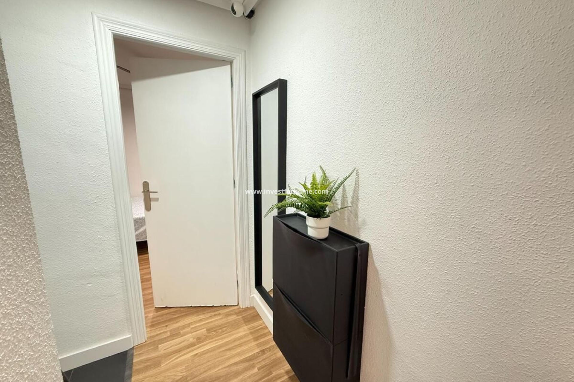 Se vende apartamento reformado cerca de las playas y el paseo marítimo de Torrevieja. Presentamos este magnífico apartamento totalmente reformado de 89 m², ubicado en la céntrica y cotizada calle San Pascual de Torrevieja, a tan solo 450 metros de la Playa del Cura, una de las zonas más demandadas tanto para residencia habitual como para inversión. La vivienda destaca por su amplitud, funcionalidad y excelente distribución, aprovechando al máximo cada metro cuadrado. Dispone de cuatro dormitorios, dos de ellos dobles y dos individuales, lo que la convierte en una opción ideal para familias numerosas, para quienes necesiten espacios adicionales como despacho o zona de invitados, o para aquellos interesados en el alquiler vacacional o de larga duración. Cuenta con un baño amplio y completo, equipado con suelo radiante, un detalle de calidad que aporta un alto nivel de confort y bienestar durante todo el año. El apartamento ha sido objeto de una reforma integral, incluyendo la instalación eléctrica completamente nueva, lo que garantiza seguridad, eficiencia y tranquilidad para el nuevo propietario. El corazón de la vivienda es su amplio salón-comedor con cocina integrada, un espacio moderno, luminoso y acogedor, pensado para disfrutar tanto del día a día como de reuniones sociales. El salón dispone además de chimenea, un elemento poco habitual en la zona que aporta carácter, calidez y un ambiente especialmente agradable durante los meses de invierno. Uno de los grandes atractivos de esta propiedad es que cuenta con el balcón más grande de todo el edificio, un valor diferencial que permite disfrutar del excelente clima mediterráneo, crear una zona de descanso exterior o incluso un pequeño espacio chill out. La vivienda está equipada con aire acondicionado por splits en todas las habitaciones y en el salón, asegurando una temperatura óptima durante todo el año. Su ubicación es inmejorable, rodeada de todo tipo de servicios como supermercados, restaurantes, comercios, transporte público, centros médicos y zonas de ocio, lo que permite una vida cómoda sin necesidad de utilizar el vehículo. Esta propiedad representa una oportunidad única de adquirir un apartamento amplio, reformado y listo para entrar a vivir, en una de las zonas más atractivas de Torrevieja, a pocos minutos de la playa y con un alto potencial tanto para uso personal como para inversión.