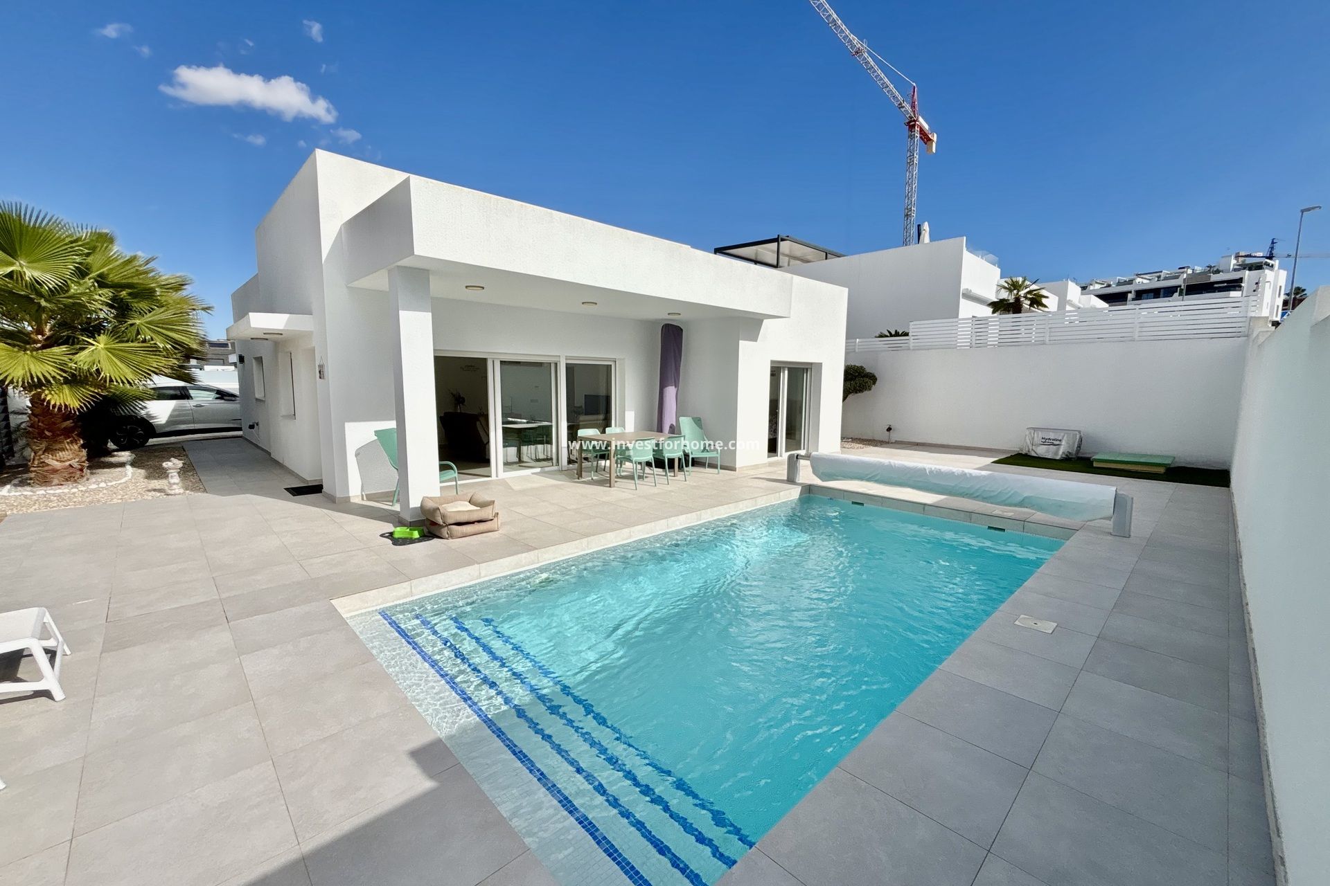 Ubicado en la encantadora localidad de Binijófar, este exclusivo chalet independiente ofrece una oportunidad única para disfrutar de un entorno tranquilo y privilegiado. Con una distancia de tan solo 1 km al campo de golf más cercano, es ideal para los amantes de este deporte que buscan combinar comodidad y ocio. La propiedad cuenta con una distribución bien pensada que incluye tres dormitorios y dos baños, proporcionando un espacio acogedor para toda la familia. Además, está equipada con aire acondicionado, lo que garantiza un ambiente confortable durante todo el año. EXTERIORES El exterior de este chalet independiente es un verdadero oasis de tranquilidad. La propiedad cuenta con un jardín privado que ofrece un espacio verde perfecto para relajarse o disfrutar de actividades al aire libre. Además, dispone de una terraza que se convierte en el lugar ideal para disfrutar de las vistas y del clima mediterráneo. Para aquellos que buscan refrescarse durante los meses más cálidos, la piscina privada es un lujo añadido que proporciona un espacio exclusivo para el ocio y el disfrute personal. INTERIORES El interior de la vivienda está diseñado para ofrecer el máximo confort y funcionalidad. Los suelos de gres porcelánico aportan un toque de elegancia y son fáciles de mantener. La cocina está equipada con electrodomésticos modernos, facilitando las tareas diarias y permitiendo disfrutar de la cocina en casa. Los armarios empotrados en los dormitorios ofrecen un amplio espacio de almacenamiento, manteniendo el orden y la organización. Cada detalle ha sido cuidadosamente considerado para crear un hogar acogedor y práctico. BENIJÓFAR Benijófar, en la provincia de Alicante, es un tesoro escondido que combina la tranquilidad del campo con la proximidad a las playas de la Costa Blanca. Aunque no sea un destino turístico masivo, su encanto reside en su ambiente apacible y su proximidad a lugares de interés. El turismo en Benijófar se centra en su entorno natural, ideal para caminatas y ciclismo, así como en su proximidad a campos de golf y atractivos cercanos como las playas de Guardamar del Segura. El estilo de vida en Benijófar es tranquilo y familiar. Sus residentes disfrutan de la vida en un entorno rural, donde se promueve la vida al aire libre y se fomenta la cercanía comunitaria. La gastronomía local se disfruta en pequeños restaurantes y bares, donde se sirven platos tradicionales de la región. Benijófar es un remanso de paz para aquellos que buscan una vida relajada en un entorno natural hermoso.