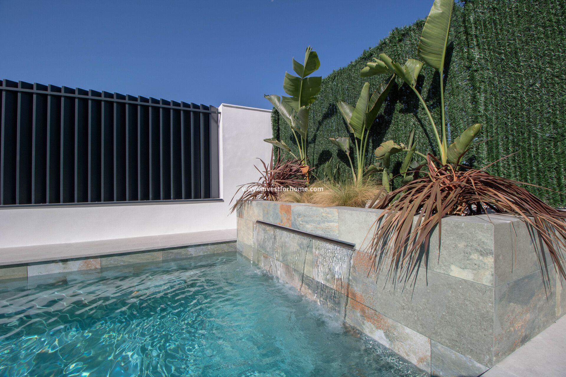 Ubicada en la encantadora localidad de Finestrat, esta exclusiva colección de 11 viviendas independientes ofrece un entorno privilegiado con vistas al mar. Diseñadas para quienes buscan un estilo de vida sofisticado, estas propiedades destacan por su cercanía al mar, a solo 5 km, y su proximidad a un campo de golf, a 0.7 km. Cada vivienda está cuidadosamente diseñada para maximizar el confort y la funcionalidad, integrando tecnología de vanguardia y acabados de alta calidad. EXTERIORES Los exteriores de estas viviendas independientes en Finestrat están pensados para disfrutar del clima mediterráneo. Cada propiedad cuenta con un jardín privado y una terraza, ideales para momentos de relax al aire libre. Además, disponen de un solárium que ofrece un espacio adicional para disfrutar del sol y las vistas panorámicas al mar. La presencia de una piscina privada en cada vivienda añade un toque de lujo y exclusividad, permitiendo disfrutar de un refrescante baño en la privacidad de tu hogar. Las pérgolas complementan el diseño exterior, proporcionando sombra y un espacio acogedor para reuniones al aire libre. INTERIORES El interior de estas viviendas independientes en Finestrat está diseñado para ofrecer el máximo confort y funcionalidad. Con una distribución que incluye tres dormitorios y tres baños, cada espacio está optimizado para el bienestar de sus residentes. Los suelos de cerámica aportan un toque moderno y son fáciles de mantener. La cocina está equipada con electrodomésticos de alta gama, y el sistema de domótica permite controlar diversos aspectos del hogar con facilidad. Las persianas eléctricas y el aire acondicionado aseguran un ambiente confortable en cualquier época del año. Los armarios empotrados ofrecen un amplio espacio de almacenamiento, mientras que el videoportero añade un nivel extra de seguridad. FINESTRAT Finestrat, en la provincia de Alicante, es un lugar que combina la serenidad rural con la proximidad a zonas turísticas populares. Aunque no sea un destino turístico principal, su encanto radica en su belleza natural y su ambiente tranquilo. El turismo en Finestrat se centra en su entorno montañoso y en su proximidad a atracciones como el parque temático Terra Mítica y sus calas cercanas, como Cala Finestrat, ideales para disfrutar del mar. El estilo de vida en Finestrat es apacible y orientado a la naturaleza. Los residentes disfrutan de la vida tranquila en un entorno rural, donde se valora la tranquilidad y se fomenta la cercanía comunitaria. La gastronomía local se basa en platos típicos de la región, con influencias mediterráneas. Finestrat ofrece un ambiente sereno y natural para aquellos que buscan una vida apacible cerca de destinos turísticos reconocidos en la Costa Blanca.