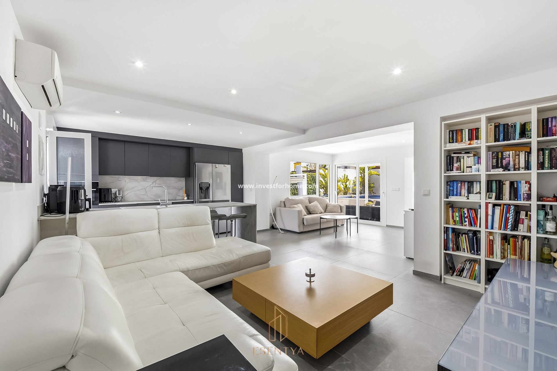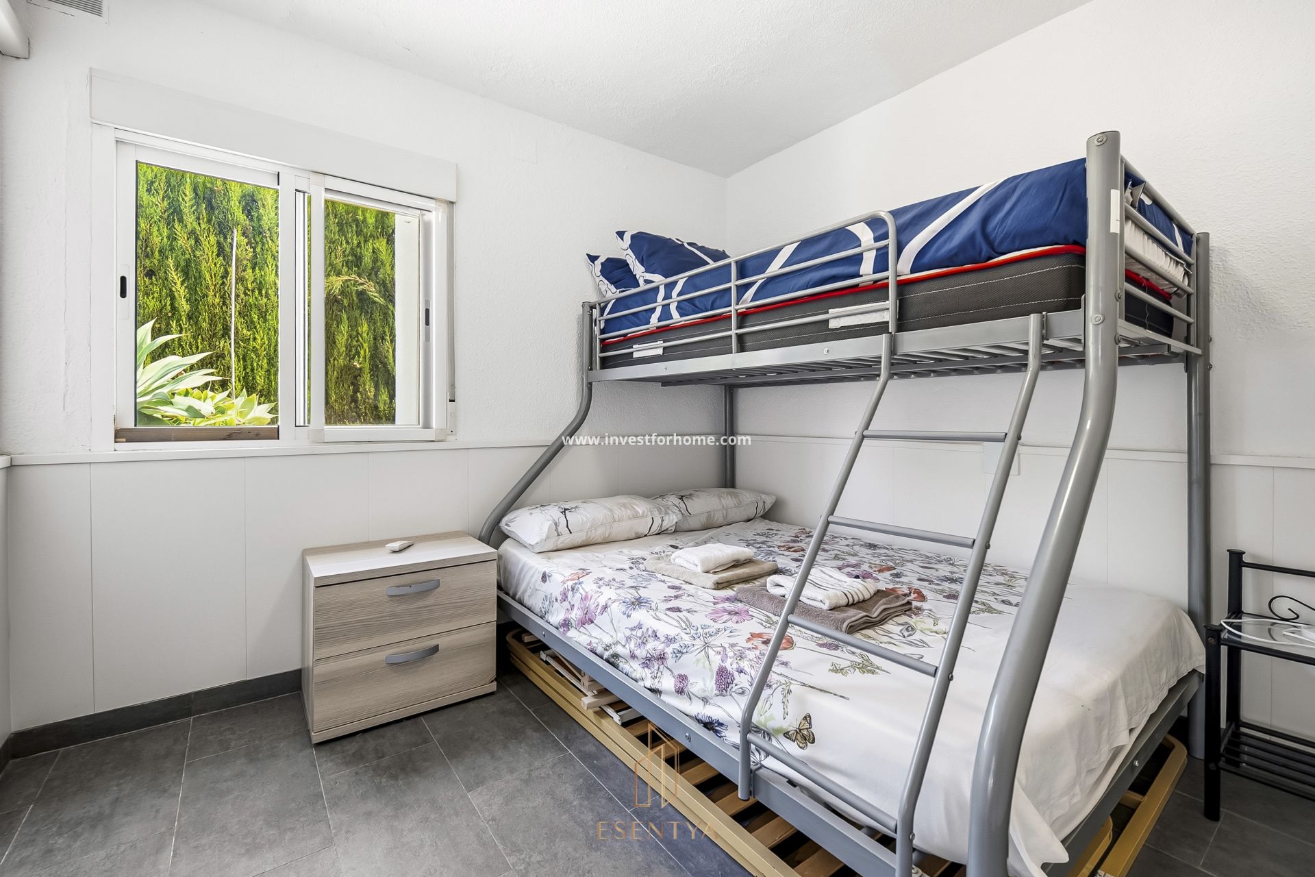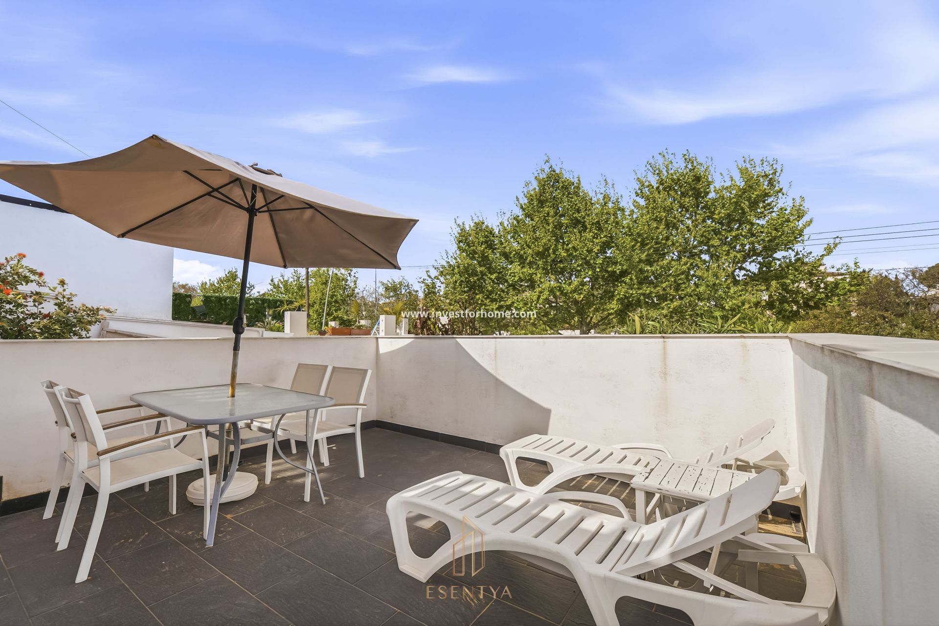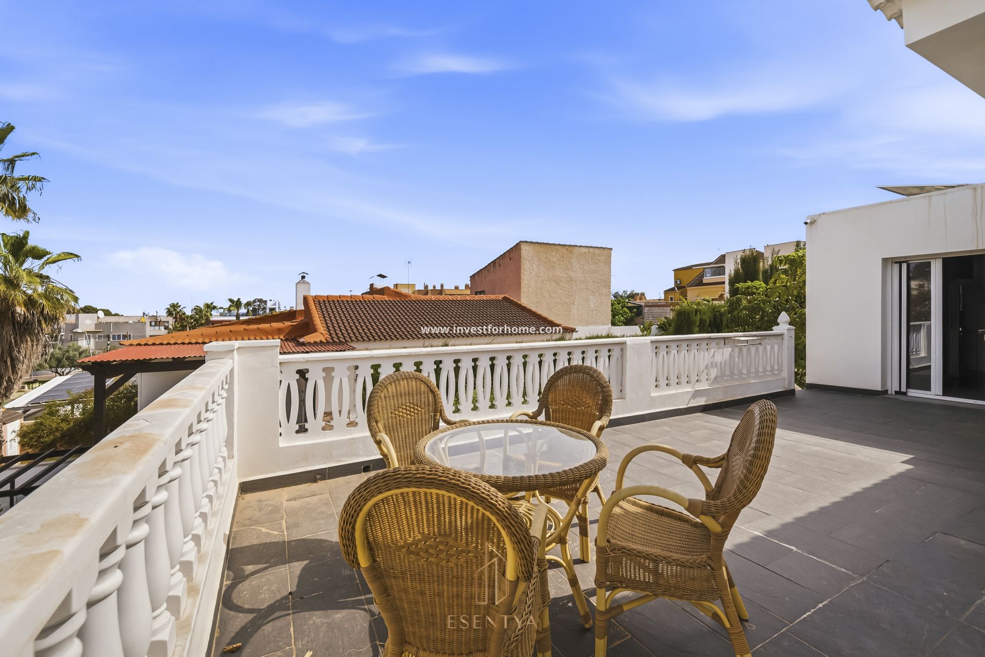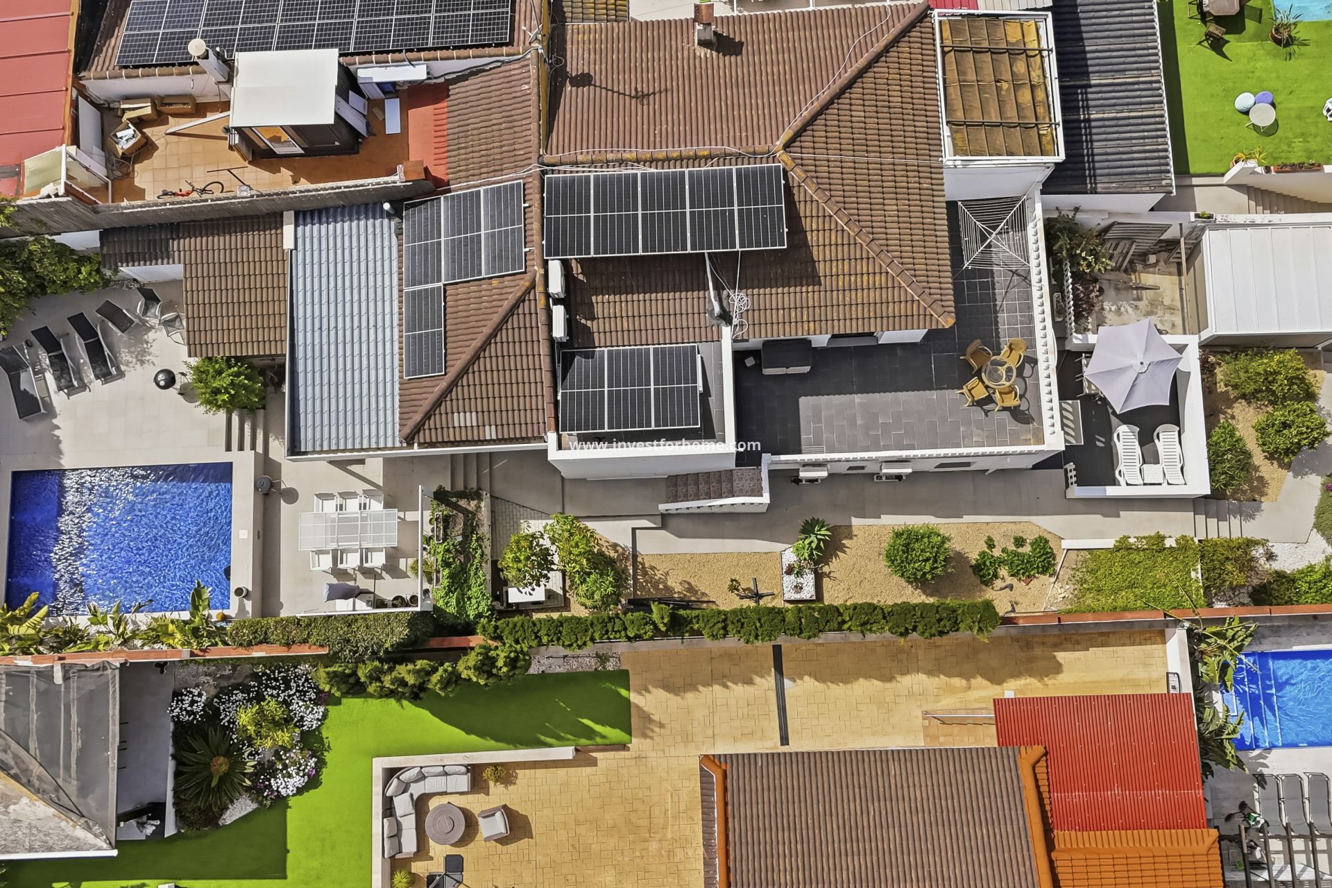 Villa adosada con piscina privada y apartamento independiente en Los Balcones, Torrevieja. Vivienda distribuida en dos plantas independientes, ideal para uso familiar o inversión con alquiler turístico. Cuenta con un apartamento independiente con licencia turística, con 2 dormitorios, 1 baño, salón, cocina, terraza y aire acondicionado. La vivienda principal dispone de 1 dormitorio con baño en suite, posibilidad de un segundo dormitorio, baño de invitados, cocina moderna equipada, salón y terraza. Situada sobre una parcela de 462 m² con jardín, piscina privada climatizada y varias terrazas con vistas al parque. Ubicada en una zona residencial tranquila, cerca de servicios y del centro de Torrevieja. Características destacadas 3 dormitorios 3 baños 170 m² construidos Parcela de 462 m² Vivienda en 2 plantas independientes Apartamento independiente con licencia turística Piscina privada climatizada Jardín Varias terrazas Vistas al parque Orientación este (piscina) y oeste (fachada principal) Cocina moderna equipada Aire acondicionado Semi amueblado Ventanas con doble acristalamiento Estilo moderno 12 paneles solares Garaje (preparado para coche eléctrico) Zona tranquila y residencial Cerca de hospital Entorno natural A poca distancia a pie de comercios, bares y restaurantes Cerca del centro de Torrevieja y Orihuela Costa Gastos anuales: IBI: 560 €