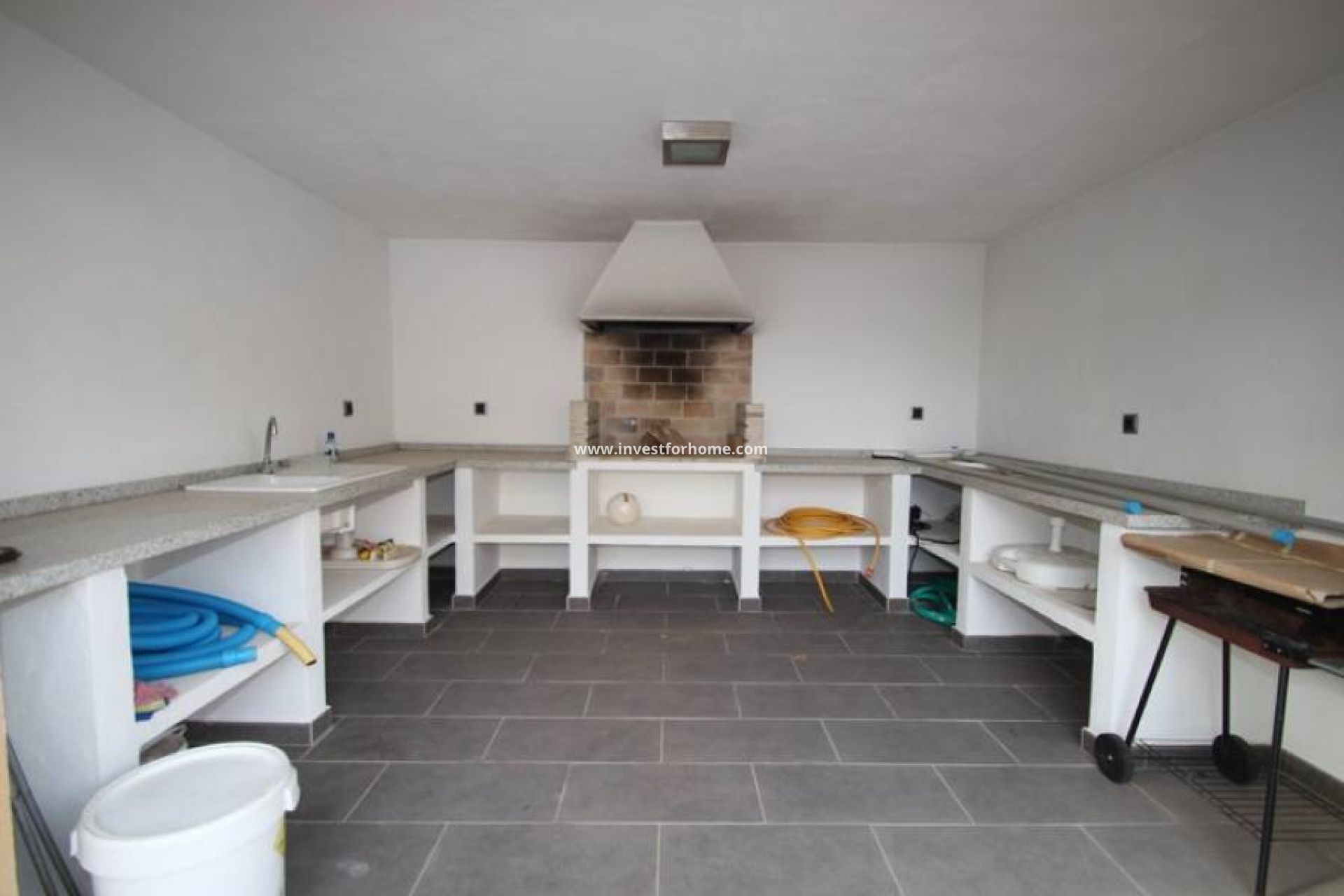 Cabo Roig , Chalet a estrenar de 1.095 mtrs de parcela y 477 m2 construidos de vivienda con 5 dormitorios ,5 baños , 2 aseos , salon comedor , cocina y despensa .Sala de juegos , sala de maquinas , y sauna y 4 terrazas .Piscina privada de 10x5 , barbacoa .Toda la viviendas están domotizadas , aire acondicionado , amueblado a 300metros de la playa