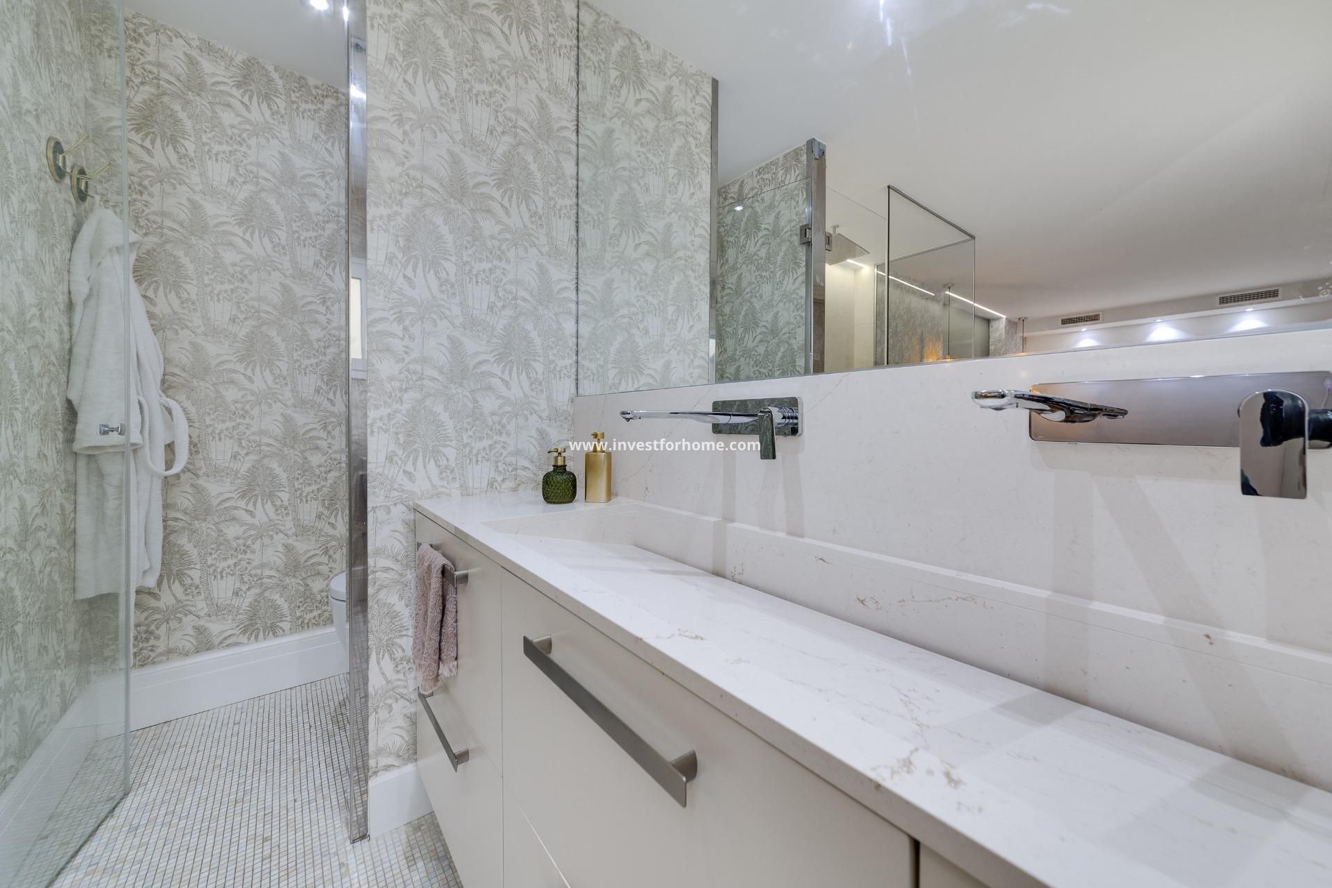 Cet appartement est un rêve qui peut devenir réalité ! Cela ne pourrait pas être plus beau ! Cette propriété vous offre confort et style. La propriété est distribuée sur deux étages. On accède à la maison par l'étage supérieur, rez-de-chaussée. Vous y trouverez un lumineux salon-salle à manger avec une cuisine ouverte moderne avec îlot et entièrement équipée, des toilettes et une grande chambre avec un dressing et une salle de bain en suite. Au rez-de-chaussée, vous profiterez d'un grand séjour et de trois autres grandes chambres dont une avec salle de bain en suite, ainsi qu'une autre salle de bain supplémentaire. Il dispose également d'un espace de stockage/buanderie et d'un charmant patio avec gazon artificiel, où vous pourrez profiter et vous détendre. Situé au centre de Torrevieja, à proximité de tous les services nécessaires et à seulement 200 mètres de Playa del Cura. De plus, d'autres plages sont à quelques minutes à pied, la promenade et différents monuments culturels de la ville. Ne manquez pas cette opportunité de vivre dans cette maison unique et magnifique !