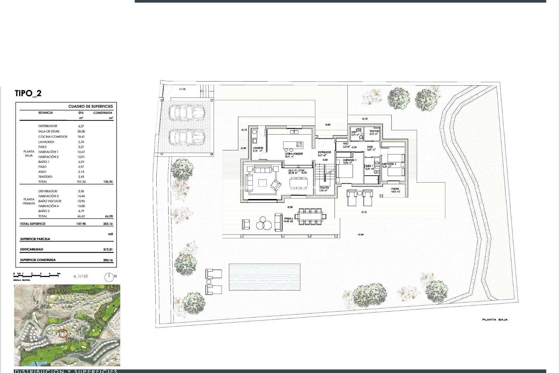 Villas méditerranéennes durables à vendre à Macenas, Almería Découvrez l'essence même de la vie méditerranéenne avec ce nouveau projet immobilier de villas exclusives à Macenas, Almería. Situées dans un complexe résidentiel sécurisé à seulement 600 mètres de la plage et entourées d'un paysage naturel préservé, ces maisons sont idéales pour ceux qui recherchent détente, élégance et durabilité en bord de mer. Une vie exclusive dans un complexe près de la Méditerranée Ce nouveau projet résidentiel propose des villas individuelles de 3 ou 4 chambres sur des terrains spacieux. Situées dans un complexe privé sur la côte d'Almería, chaque maison dispose de terrasses spacieuses avec une vue imprenable sur la mer ou le golf, idéales pour profiter du climat doux toute l'année. Le complexe est situé à seulement 6 km de Mojácar Pueblo, un charmant village connu pour ses maisons blanchies à la chaux et son patrimoine culturel. Un design moderne avec une touche méditerranéenne Ces villas allient une architecture contemporaine à des touches méditerranéennes traditionnelles, s'intégrant harmonieusement dans le paysage naturel de Macenas. Construites avec des matériaux durables et un aménagement paysager autochtone à faible consommation d'eau, le projet favorise un mode de vie respectueux de l'environnement. Un futur parcours de golf 18 trous intégré à l'environnement est également prévu, ce qui ajoutera une valeur à long terme à la communauté. Équipements haut de gamme et systèmes à haute efficacité Chaque villa est équipée d'une cuisine SANTOS entièrement équipée et personnalisable avec des appareils électroménagers haut de gamme. La climatisation est assurée par un système de climatisation centralisée et un chauffage au sol alimenté par un système aérothermique à haute efficacité énergétique. Le système de zonage intelligent Airzone garantit un confort thermique maximal dans toute la maison. Les équipements supplémentaires comprennent : Menuiserie extérieure en aluminium Technal avec rupture de pont thermique Volets en aluminium motorisés et réglables Piscine privée de 7,5 m x 3,2 m Pergola en aluminium laqué Options supplémentaires telles que cheminée, cuisine d'été et ensembles de meubles sur mesure Emplacement privilégié et points d'intérêt à proximité Plage de Macenas – 600 m Mojácar Pueblo – 6 km Marina de la Torre Golf – 9 km Parc naturel de Cabo de Gata – 30 km Ville d'Almería – 88 km Aéroport d'Almería – 77 km Votre escapade méditerranéenne vous attend Que vous recherchiez une résidence permanente, une maison de vacances ou un investissement solide, ces villas méditerranéennes durables à Macenas offrent un style de vie incomparable sur la côte d'Almería. Contactez-nous dès aujourd'hui pour en savoir plus ou pour planifier une visite.