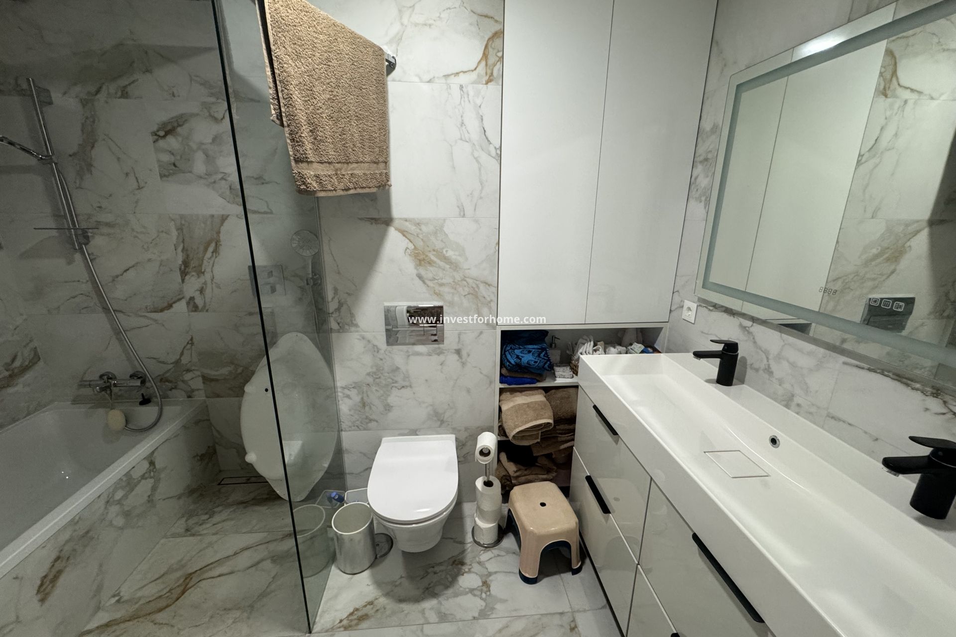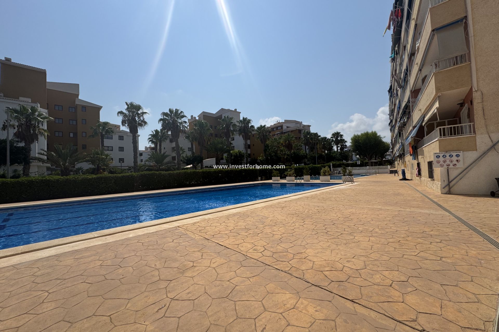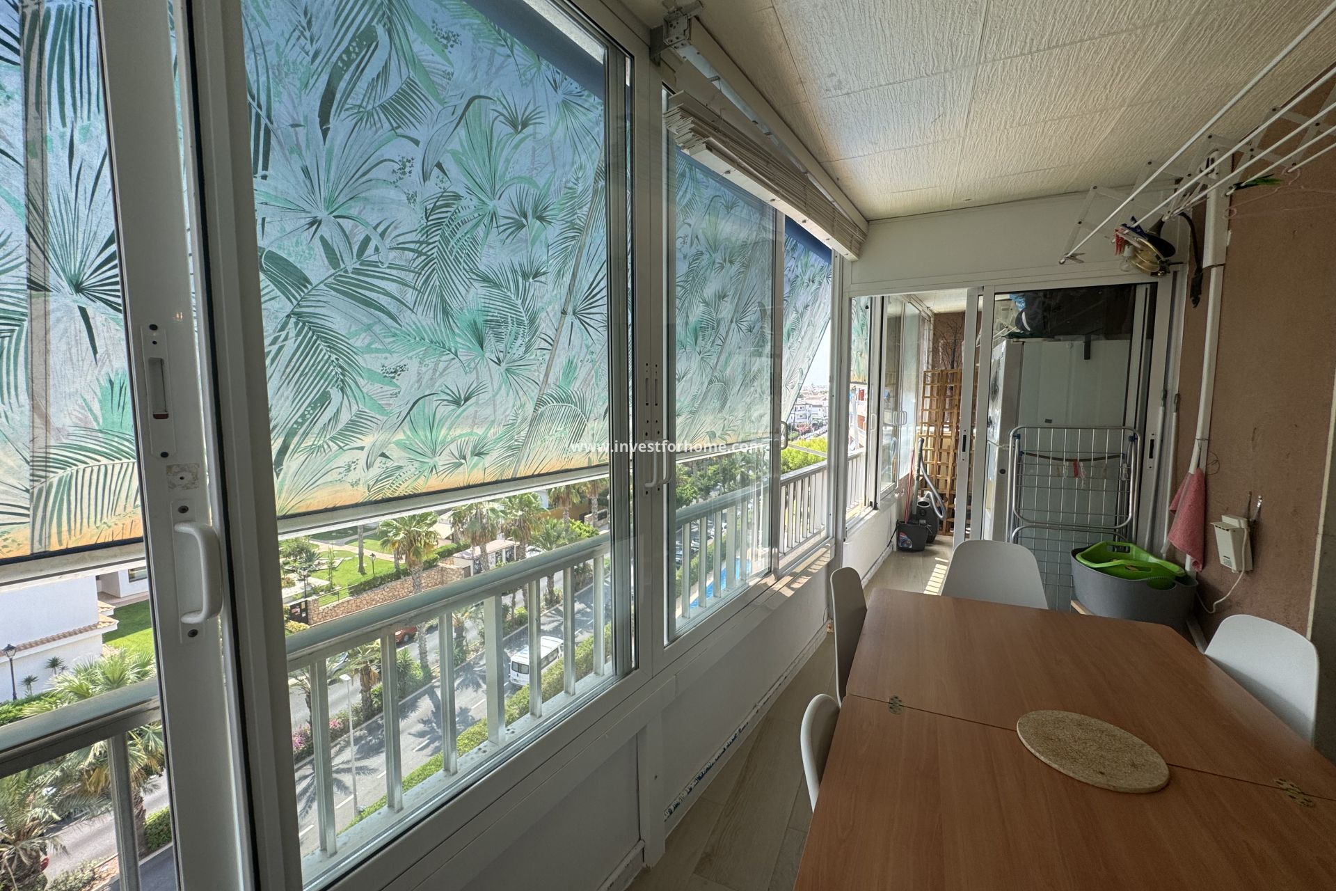 Penthouse à Rocío del Mar, Torrevieja. À seulement 200 m de la mer, ce lumineux penthouse au 6ème étage offre 110 m² plus une terrasse vitrée de 12 m² orientée plein sud. Il comprend 3 chambres (dont une avec accès à la terrasse), 1 salle de bain complète, 1 WC invité, un salon-salle à manger avec climatisation et ventilateur, ainsi qu’une cuisine américaine rénovée avec lave-vaisselle, lave-linge et fenêtre extérieure. Le bien dispose d’une porte blindée, est vendu meublé et bénéficie d’un ascenseur, d’une piscine et d’un parking communautaires. Situé dans le quartier résidentiel calme de Rocío del Mar, avec tous les services à proximité et d’excellentes connexions routières. Caractéristiques principales : 3 chambres et 2 salles de bain (1 complète + 1 WC invité) 110 m² + terrasse vitrée de 12 m² Orientation sud Cuisine américaine rénovée avec électroménagers Salon-salle à manger avec A/C et ventilateur Climatisation supplémentaire dans le couloir Meublé et équipé Porte blindée Parking communautaire Piscine communautaire Immeuble avec ascenseur Emplacement : À 200 m de la mer Quartier résidentiel calme et consolidé Proche des supermarchés, restaurants, hôpitaux et du centre commercial La Zenia Boulevard Accès facile à la N-332 et à l’AP-7 À proximité des plages Pavillon Bleu, criques, terrains de golf et zones sportives