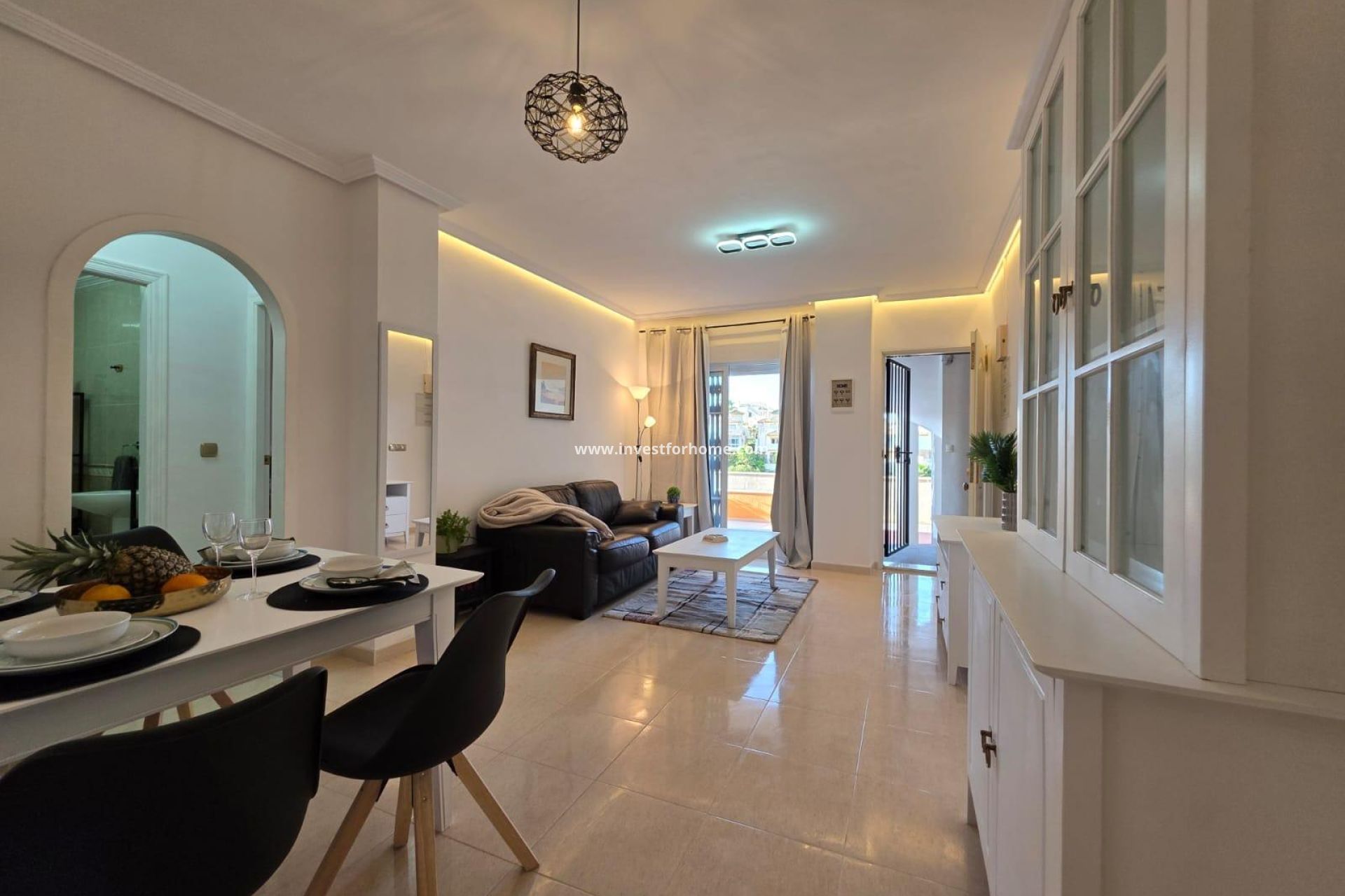 Découvrez votre nouveau chez-vous dans la charmante ville d'Orihuela Costa, spécifiquement dans la zone prisée de Lomas de Cabo Roig-Los Dolses. Cet appartement spectaculaire en rez-de-chaussée a été entièrement rénové et offre un espace moderne et accueillant qui s'adapte à vos besoins. Avec une superficie totale construite de 72 m², il dispose de deux grandes chambres doubles parfaites pour se reposer après une longue journée. Détendez-vous dans son lumineux salon, où vous passerez des moments inoubliables avec votre famille et vos amis grâce à ses généreux espaces ouverts. Mais ce n'est pas tout ; ce merveilleux bien immobilier dispose également de deux terrasses idéales pour profiter du climat méditerranéen tout en admirant des vues imprenables sur la nature environnante. La terrasse principale a une superficie incroyablement spacieuse (32 m²), parfaite pour des réunions en plein air ou simplement pour se détendre au soleil. De plus, vous pourrez vous rafraîchir pendant les chauds jours d'été grâce aux installations communautaires qui comprennent une piscine entourée d'espaces verts remplis d'arbres fruitiers qui vous offrent une ombre naturelle. La sécurité est garantie grâce à une porte blindée tandis que chaque recoin extérieur assure fraîcheur et lumière naturelle inégalée, ce qui met encore plus en valeur le charme de l'endroit – tout cela au sein d'une urbanisation apaisante idéale tant comme résidence principale que comme propriété de vacances. Vivre ici signifie expérimenter une tranquillité maximale tout en étant un acteur actif de l'environnement local magnifique rempli d'activités récréatives ! Ne manquez pas cette opportunité unique : venez dès aujourd'hui ! Votre nouvelle vie commence ici.