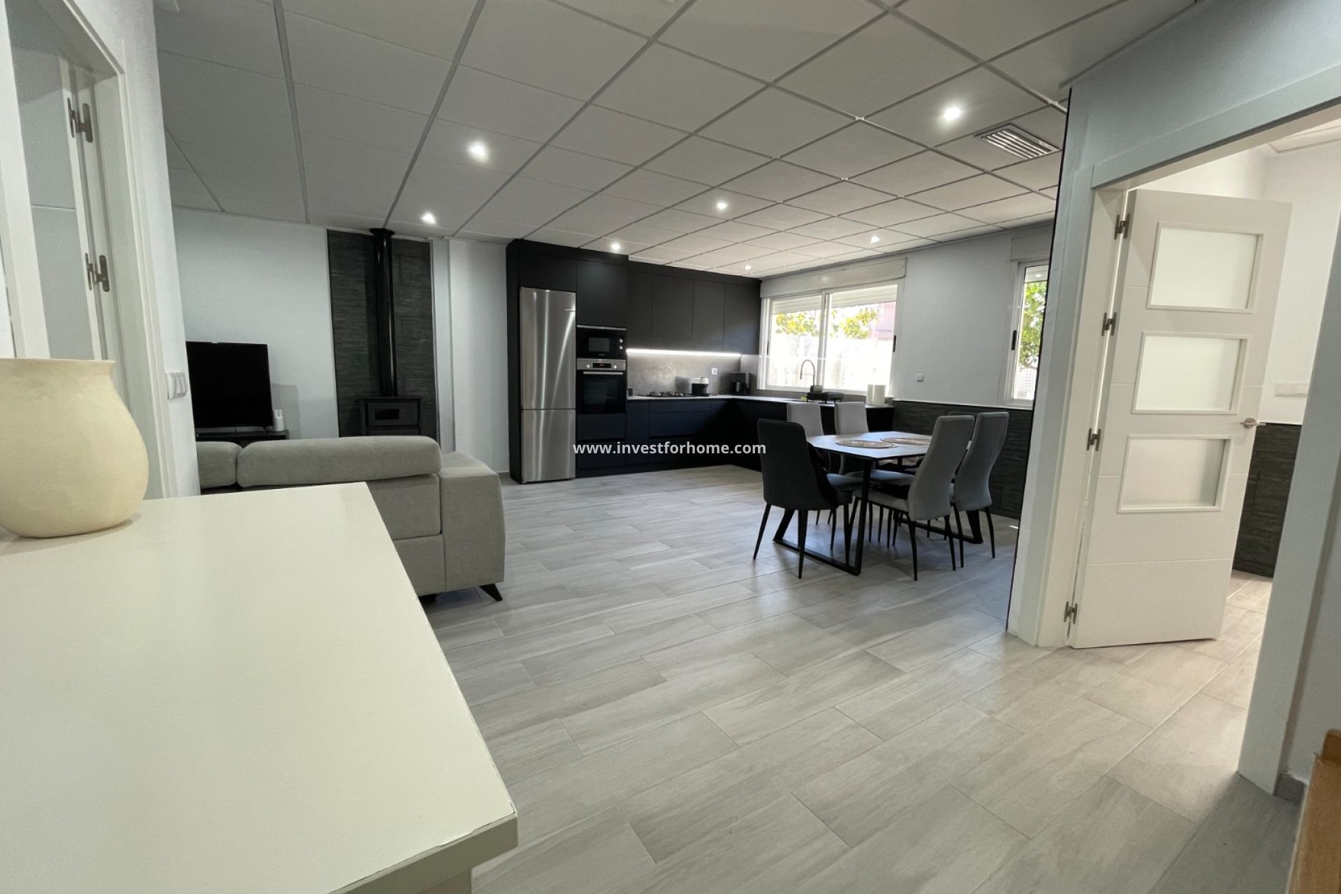 Nous vous présentons cette superbe maison mitoyenne, récemment rénovée et particulièrement spacieuse, située dans le charmant village d'Algorfa. Idéale pour les familles recherchant confort, espace et proximité de toutes les commodités, elle combine parfaitement vie moderne et charme traditionnel du village.En entrant, une agréable terrasse privée mène à un lumineux espace de vie ouvert comprenant le salon, la salle à manger et une cuisine contemporaine — parfait pour la vie quotidienne et pour recevoir des invités. Le rez-de-chaussée comprend également deux grandes chambres doubles, une salle de bain élégante et un garage spacieux avec porte automatique, offrant stationnement et espace de rangement supplémentaire.À l'étage supérieur, la maison continue d'impressionner avec trois chambres supplémentaires, dont une chambre principale très spacieuse, ainsi qu'une salle de bain familiale. Depuis cet étage, vous accédez directement au solarium privé, idéal pour se détendre tout en profitant d'une vue panoramique sur les environs.L'emplacement est excellent : à quelques pas seulement se trouvent le centre médical, l'école, les commerces, les bars, les restaurants et toutes les commodités nécessaires. La piscine municipale est également à proximité.Grâce à ses dimensions généreuses, sa rénovation récente et son emplacement privilégié, cette propriété représente à la fois un excellent foyer familial et une superbe opportunité d'investissement dans l'un des villages les plus prisés de la Costa Blanca.