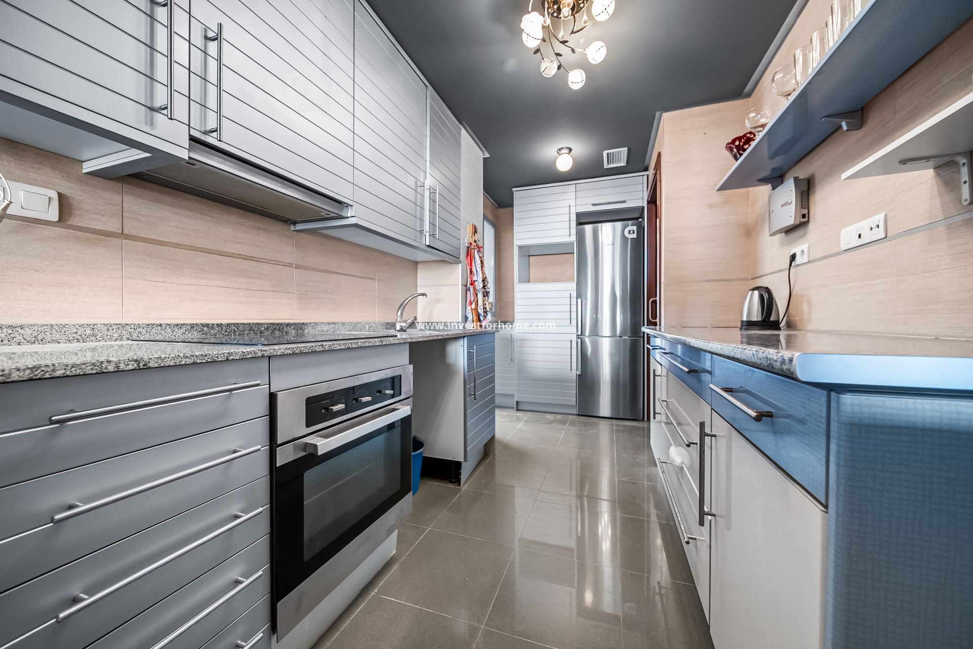 Penthouse en front de mer avec solarium privé et vue sur la mer à Torrevieja. Penthouse au cinquième étage avec vue spectaculaire sur la mer, à seulement 100 mètres de la plage del Cura. Il comprend 3 chambres et 2 salles de bain, dont une suite parentale avec vue mer. Il dispose d’une grande terrasse orientée à l’est et d’un solarium privé de 80 m² avec cuisine d’été fermée. Place de parking souterrain et piscine communautaire incluses. Caractéristiques principales 3 chambres 2 salles de bain 120 m² construits Grande terrasse avec vue sur la mer Solarium privé de 80 m² Cuisine d’été fermée sur le solarium Suite parentale avec vue sur la mer Cinquième étage Piscine communautaire Parking souterrain Orientation est Emplacement 100 m de la plage del Cura 250 m de la plage de Los Locos 80 m du supermarché 50 m des bars et restaurants