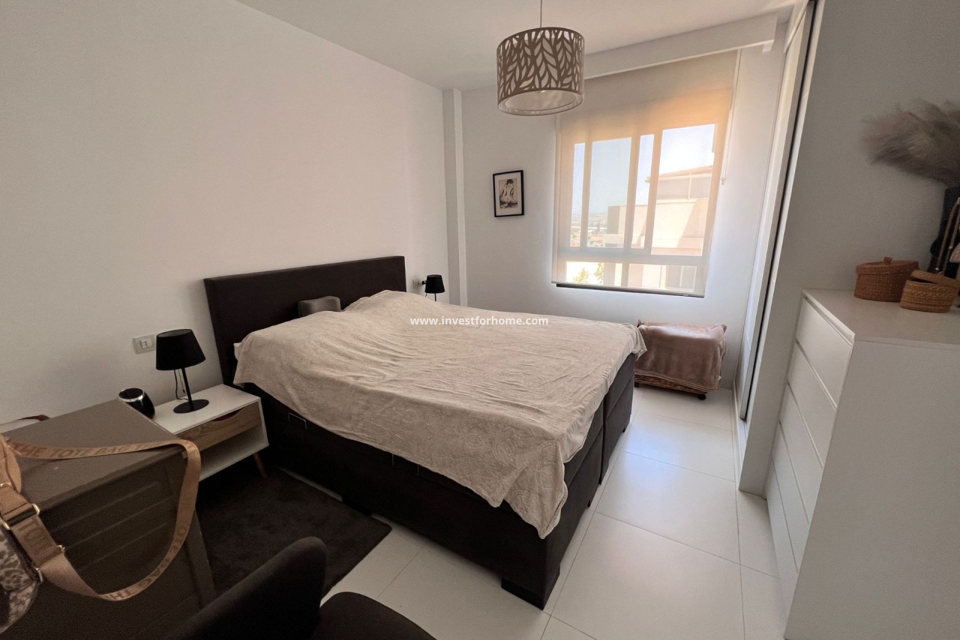 Appartement confortable à vendre en bon état, situé au 4ème étage (dernier étage) d'un immeuble avec ascenseur, idéal aussi bien pour une résidence permanente que pour une maison de vacances. La propriété offre une surface habitable de 70 m², répartie en deux chambres avec placards, une salle de bain complète et des toilettes, une cuisine ouverte entièrement équipée et un séjour lumineux avec accès à une terrasse privée, idéale pour profiter du beau temps. Son atout majeur est son vaste espace extérieur : une terrasse de 58 m² jouxtant le séjour et surplombant un solarium privé de 53 m² ! Avec une vue panoramique spectaculaire sur les environs ! L'appartement dispose d'une place de parking souterraine privée, d'un débarras fermant à clé, de la climatisation et est livré meublé et équipé. L'immeuble est équipé d'un interphone et d'une porte blindée, gage de sécurité et de confort. Situé dans un quartier résidentiel avec piscine commune, à proximité de toutes les commodités : à seulement 5 minutes des zones de loisirs, 10 minutes des golfs, 20 minutes de la plage et 40 minutes de l'aéroport. Grâce à son orientation ouest-sud-ouest, vous bénéficierez d'une abondante lumière naturelle tout au long de la journée. Ne manquez pas cette excellente opportunité de vivre dans l'un des quartiers les plus calmes et les mieux desservis de la Costa Blanca !