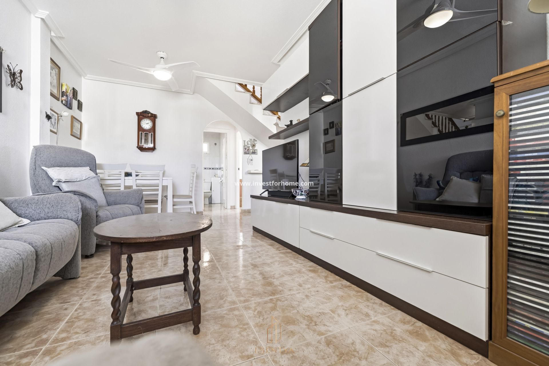 Penthouse duplex avec solarium à La Regia, Orihuela Costa. Penthouse duplex réparti sur deux niveaux, situé dans une résidence fermée avec piscine communautaire. Orientation nord-est, vendu meublé et équipé avec climatisation et électroménagers. Le premier étage comprend un salon, une cuisine, 2 chambres et 1 salle de bain, ainsi qu’une entrée vitrée. L’étage supérieur dispose de 1 chambre, d’une salle de bain complète et d’un accès au solarium. À distance de marche de tous les services et à seulement 2 km de la plage de La Zenia. Caractéristiques principales 3 chambres 2 salles de bain Penthouse duplex Solarium Jardin Parking Rez-de-chaussée + étage supérieur Orientation nord-est Vendu meublé Climatisation Électroménagers inclus Entrée vitrée Piscine communautaire Résidence fermée À pied des services À 2 km de la plage À 0,5 km des restaurants, bars et supermarchés À 2,5 km de La Zenia Boulevard Frais annuels : Charges de copropriété : 363,6 € IBI : 196,36 €