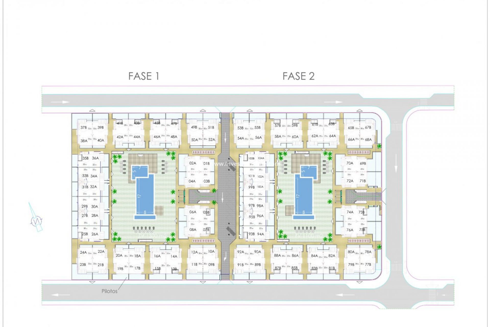 NOUVELLE CONSTRUCTION RÉSIDENTIELLE D'APPARTEMENTS DE PLAIN-PIED À LOS BALCONES, TORREVIEJA Nouvelle construction d'un complexe résidentiel avec de magnifiques vues sur le lac salé rose à Los Balcones. Le complexe se compose de 104 appartements de plain-pied avec 2 et 3 chambres, les bungalows du dernier étage ont des solariums privés avec des vues panoramiques sur le lac salé et les bungalows du rez-de-chaussée ont de grandes terrasses donnant sur la zone verte. Ces bungalows partagent de magnifiques espaces verts et deux grandes piscines. Un parking souterrain et des espaces de rangement sont disponibles en option. Cette résidence offre un design moderne, des matériaux sélectionnés, des appartements finis selon les spécifications les plus élevées en utilisant uniquement des matériaux de première qualité. La résidence sera construite à flanc de colline, de sorte que la vue et l'air sont clairs et de qualité unique. Los Balcones est situé juste à l'extérieur de Torrevieja avec tous les services accessibles, à seulement 5 minutes de Playa de Los Náufragos, des supermarchés, de l'école et du centre commercial La Zenia Boulevard, et à une minute de l'hôpital universitaire de Torrevieja. En outre, vous trouverez 4 terrains de golf à proximité, dont le club primé Las Colinas Golf & Country Club. Le complexe est situé à 40 minutes de l'aéroport d'Alicante et à 1 heure de l'aéroport de Murcia - Corvera.
