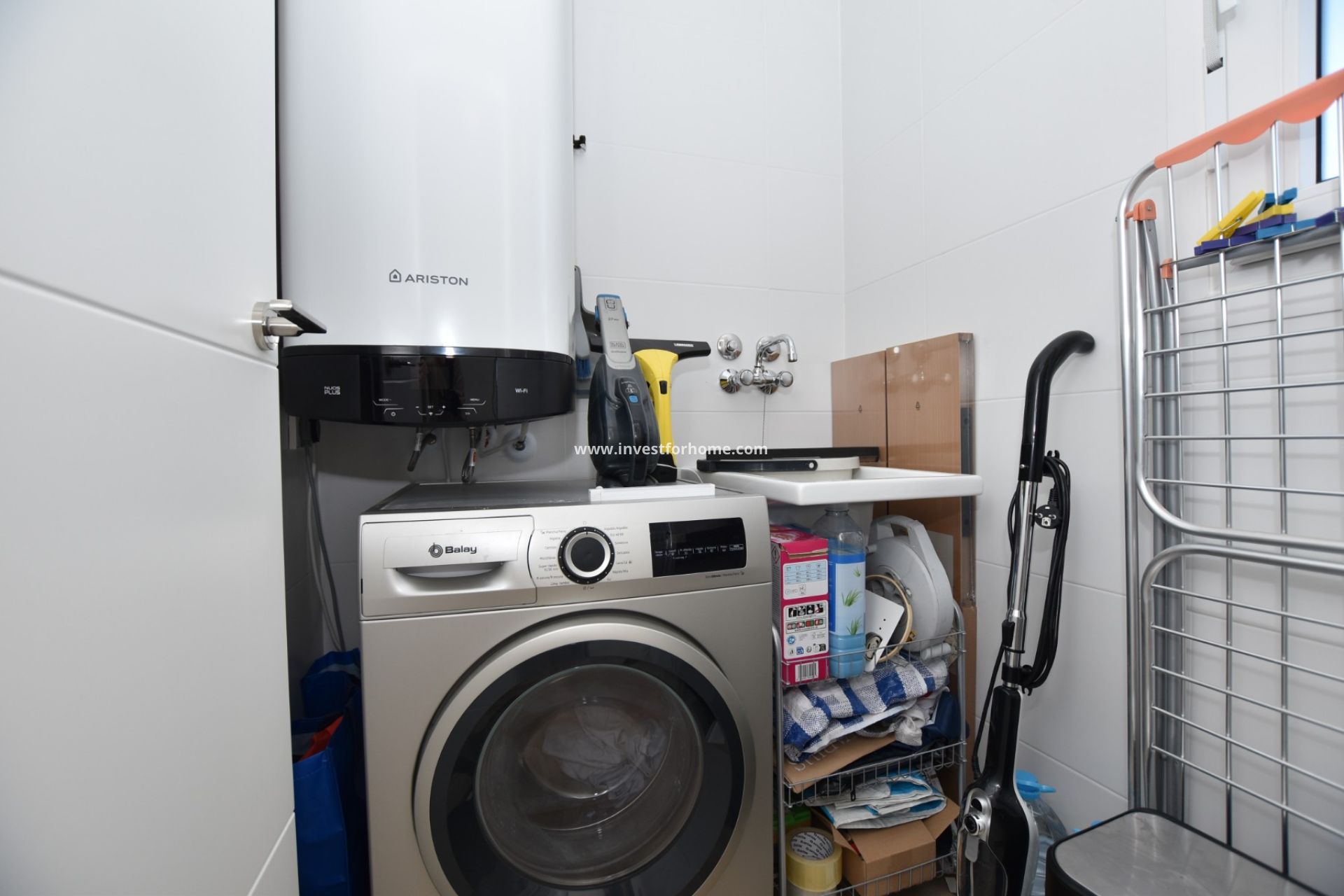 Dit mooie bovenappartement in de Capri VIII gemeenschap binnen Vistabella Golf is in april 2025 opgeleverd en is vrijwel nieuw. Het heeft 2 slaapkamers, 2 badkamers, een lichte woonkamer met open keuken, een terras en een ruim privé dakterras — ideaal om te ontspannen en van het weer te genieten. De residentie beschikt over een zwembad, minigolf, bowls, groene zones en parkeergelegenheid. De woning heeft airconditioning en goede afwerkingen. Vistabella Golf beschikt over een 18-holes golfbaan, een academie, oefenterreinen, restaurant en clubhouse. De stranden van Guardamar en Torrevieja liggen op ongeveer 20–25 minuten en de luchthaven van Alicante op ongeveer 45 minuten.