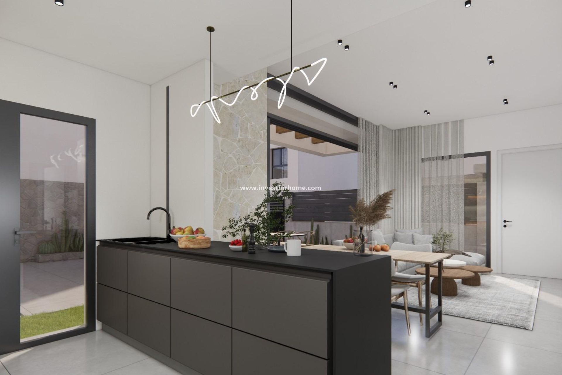 Moderne nieuwbouwwilla's in La Herrada Los Montesinos met privézwembad Exclusief woonproject in een rustige omgeving Deze exclusieve ontwikkeling van 16 moderne villa's ligt in de prestigieuze urbanisatie La Herrada in Los Montesinos en biedt privacy, comfort en een uitstekende levenskwaliteit. La Herrada staat bekend om zijn rustige woonomgeving, de nabijheid van dagelijkse voorzieningen en de bevoorrechte ligging tussen de beroemde zoutmeren van Torrevieja en La Mata. Het is een ideale locatie voor wie op zoek is naar een ontspannen en gezonde mediterrane levensstijl in het zuiden van de Costa Blanca. Eigentijds ontwerp met geoptimaliseerde binnenruimtes Elke villa heeft 110 m² goed geplande woonruimte, verdeeld over twee verdiepingen, ontworpen om natuurlijk licht en functionaliteit te maximaliseren. De woningen zijn gebouwd op percelen vanaf 185 m² en bieden royale buitenruimtes die perfect zijn om te zonnebaden, te entertainen of te ontspannen bij het privézwembad. Comfortabele indeling over twee verdiepingen De begane grond beschikt over een open woonkamer met een volledig geïntegreerde keuken en directe toegang tot de tuin en het zwembad. Op deze verdieping bevinden zich ook een slaapkamer, een complete badkamer en een handige wasruimte. Op de bovenverdieping zijn er twee ruime slaapkamers, elk met een eigen badkamer, waarvan één en suite. Beide slaapkamers hebben toegang tot een privé terras van 17 m². Voor wie nog meer buitenruimte wil, is er tegen meerprijs een optioneel solarium op het dak beschikbaar. Hoogwaardige afwerking en moderne voorzieningen De villa's zijn voorzien van hoogwaardige afwerkingen, zoals badkamermeubilair, spiegels, doucheschermen en vloerverwarming in alle badkamers. Er is een voorinstallatie voor airconditioning, een gemotoriseerde toegangspoort voor voertuigen, een eigen parkeerplaats op het perceel en een afgesloten toegang tot de woonwijk via een eigen interne straat. Toplocatie dicht bij belangrijke voorzieningen en attracties Stranden van Guardamar en Torrevieja op 9 km La Marquesa Golf, La Finca Golf en Vistabella Golf binnen 5 km Luchthaven Alicante op 29 km Natuurparken, zoutmeren, fietsroutes en wandelpaden in de buurt Comfortabel wonen in het hart van de Costa Blanca Deze nieuwbouwwoningen in Los Montesinos bieden de perfecte combinatie van modern comfort, een natuurlijke omgeving en uitstekende bereikbaarheid. Of u nu op zoek bent naar een permanente woning of een vakantiehuis, dit project biedt alles wat u nodig heeft om te genieten van een rustige en comfortabele mediterrane levensstijl. Neem vandaag nog contact met ons op om een bezichtiging te regelen en uw nieuwe woning in La Herrada te bemachtigen.