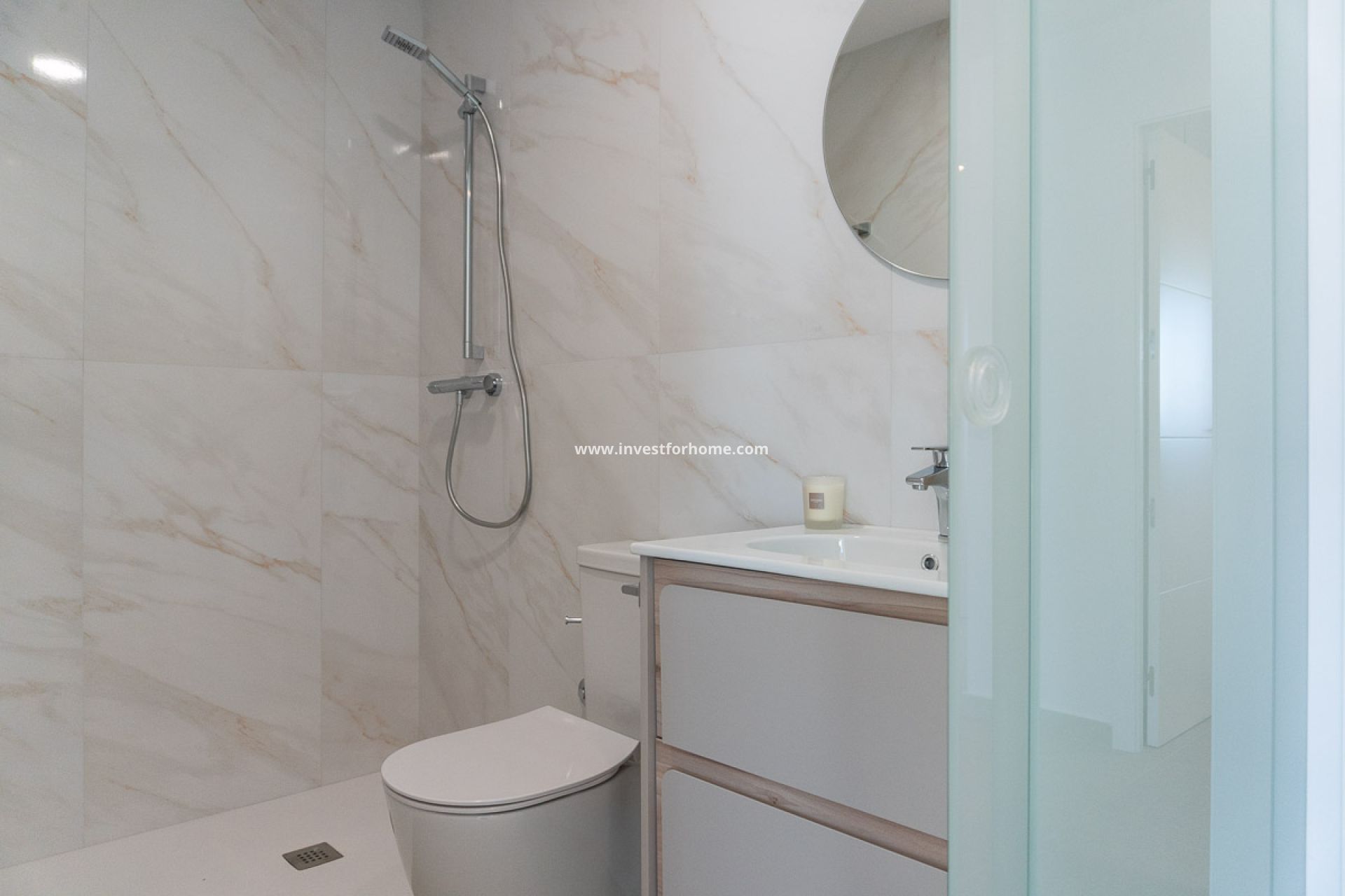 Gelegen in het gewilde gebied van Playa Flamenca, biedt deze residentie een selectie van 43 woningen die zijn ontworpen om aan de behoeften van de meest veeleisende klanten te voldoen. Het aanbod omvat appartementen, begane grond en penthouses, elk zorgvuldig gepland om comfort en functionaliteit te maximaliseren. De nabijheid van de zee, op slechts 50 meter, biedt een bevoorrechte omgeving om te genieten van de zeebries en het spectaculaire uitzicht. Bovendien vergemakkelijkt de nabijheid van de luchthaven, op 24 kilometer, de toegang en mobiliteit voor degenen die een snelle verbinding met andere steden zoeken. BUITENRUIMTES De buitenruimtes van deze residentie in Playa Flamenca zijn ontworpen om de mediterrane levensstijl aan te vullen. De woningen hebben terrassen die het mogelijk maken om te genieten van het zonnige klimaat en het uitzicht op de natuurlijke omgeving. De solariums, beschikbaar in sommige typen, bieden extra ruimte voor ontspanning en entertainment in de buitenlucht. De aanwezigheid van gemeenschappelijke tuinen voegt een vleugje groen en frisheid toe, waardoor een rustige en gastvrije omgeving voor alle bewoners ontstaat. BINNENRUIMTES Het interieur van de woningen is ontworpen om maximaal comfort en functionaliteit te bieden. De appartementen, begane grond en penthouses zijn uitgerust met keramische en porseleinen vloeren, die duurzaamheid en een elegante afwerking bieden. De pre-installatie van airconditioning zorgt voor een aangename sfeer gedurende het hele jaar. De inbegrepen apparaten en ingebouwde kasten maken het dagelijks leven gemakkelijker, terwijl de video-intercom een extra niveau van veiligheid en comfort toevoegt. Met opties van 2, 3 en 4 slaapkamers en 2 badkamers, past elke woning zich aan verschillende gezinsbehoeften aan. GEMEENSCHAPPELIJKE RUIMTES De gemeenschappelijke ruimtes van deze residentie zijn ontworpen voor het plezier van het hele gezin. Een gemeenschappelijk zwembad biedt een verfrissende ruimte voor warme dagen, terwijl de speeltuin plezier garandeert voor de kleintjes. De gemeenschappelijke tuinen bieden een groene en ontspannende omgeving, ideaal voor rustige wandelingen of om te genieten van een moment van lezen in de buitenlucht.