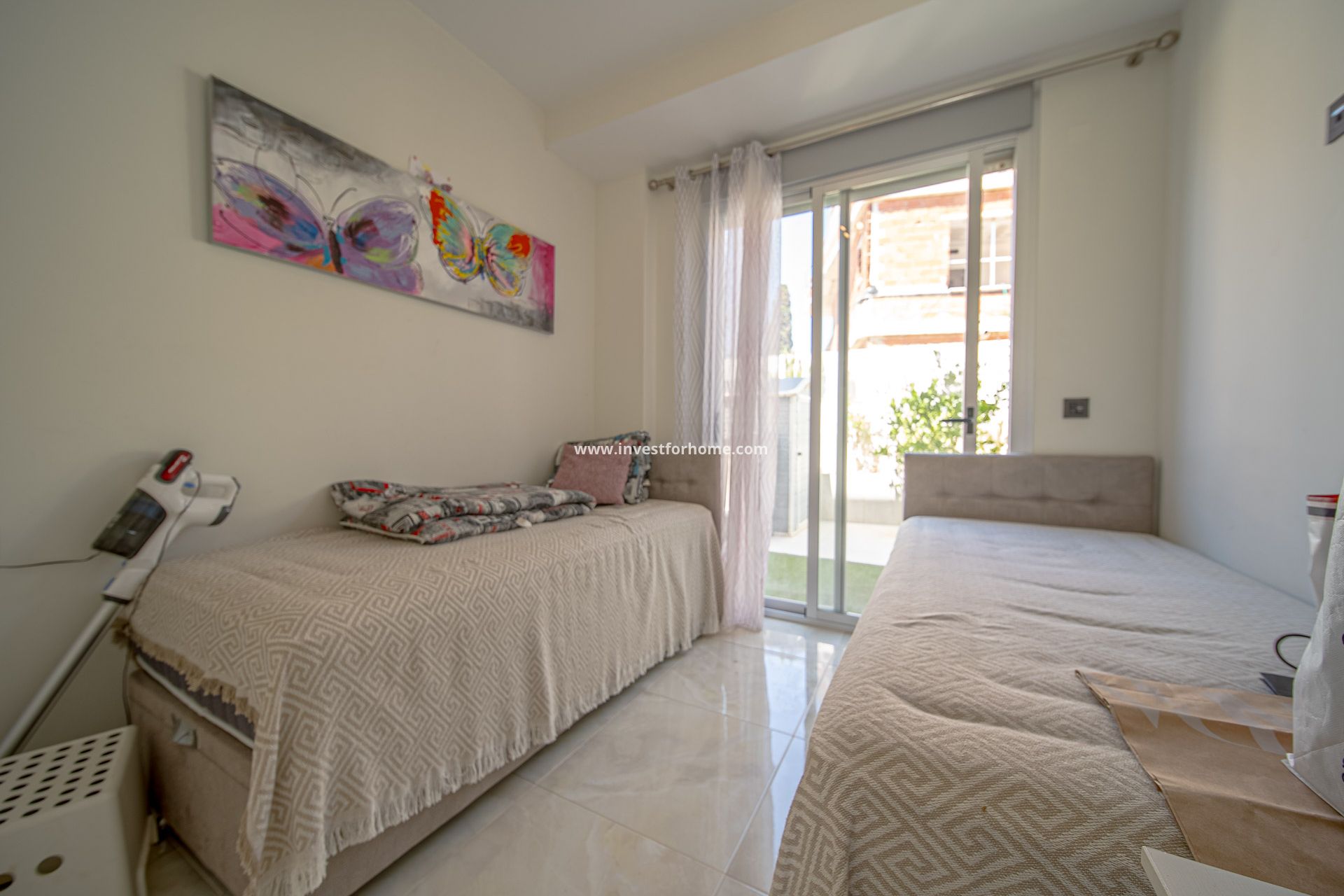 Modern villa with private pool, just 10 minutes from Campoamor beach. Located close to all services, this contemporary-style villa is sold fully furnished and ready to move into. It offers outdoor spaces designed to make the most of the Mediterranean climate all year round, including a large terrace with a pergola and a private pool. It also features a rooftop solarium with a glazed pergola. Main features 3 bedrooms and 3 bathrooms Open-plan kitchen connected to the living-dining area Built area: 119 m² Private terrace with open views Private pool Rooftop solarium with pergola Solar panel system On-plot parking space Southeast orientation Furnished and equipped IBI: €430 per year