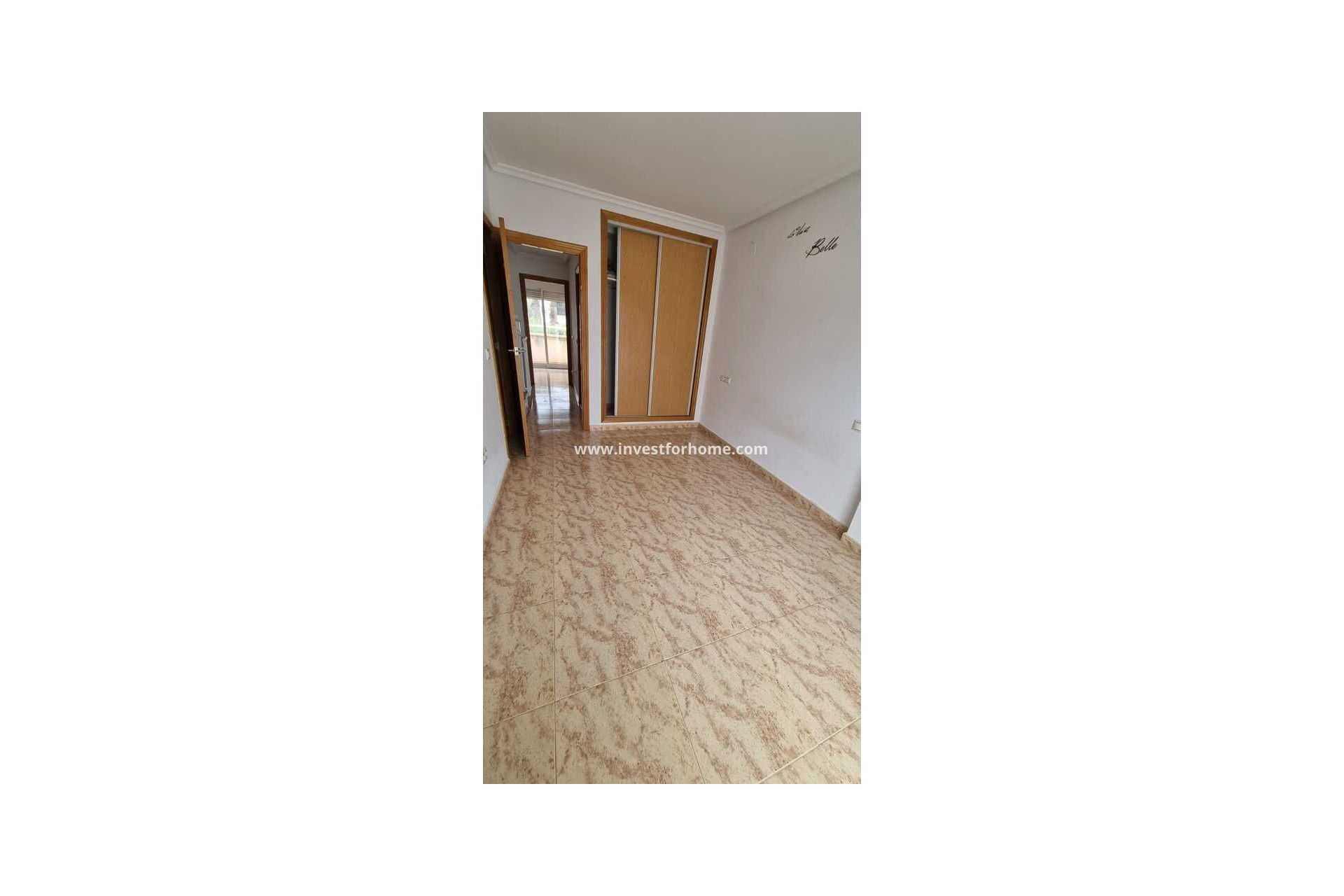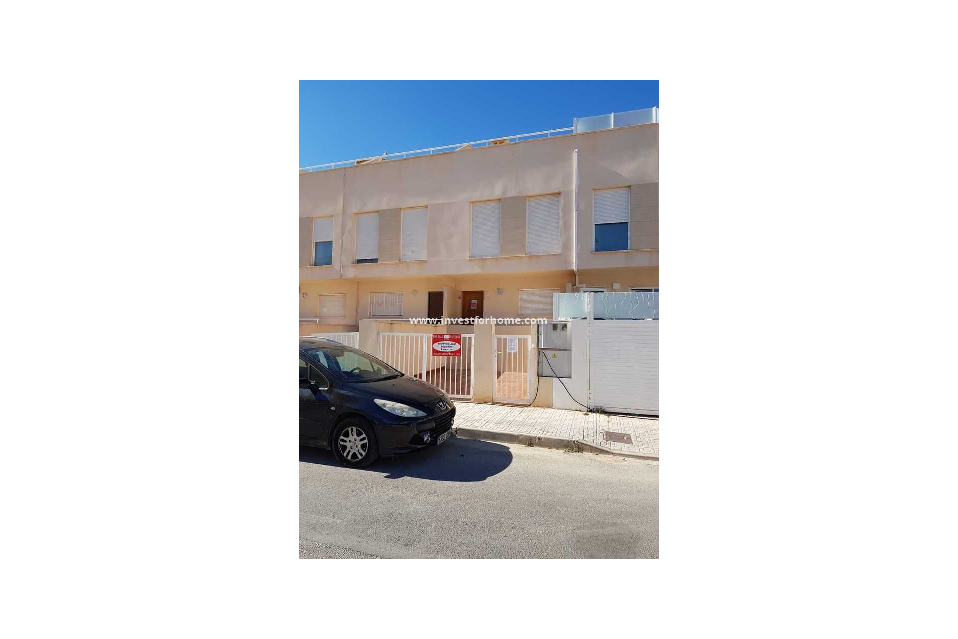 We present this townhouse triplex in Villamartín, Orihuela Costa, in a charming residential area consisting of only 9 homes. Enjoy a home with a privileged location, just 3 km from La Zenia Beach and 5 minutes from La Zenia Boulevard Shopping Center, surrounded by supermarkets, restaurants, and all the services you need.The property features a communal pool, which you can access directly from the back of the house. Its East-facing orientation ensures natural light and warmth throughout the day. Additionally, at the front of the house, a spacious patio allows you to park your vehicle or simply enjoy great moments with friends and family.Inside, upon entering, we find a cozy living room, a guest toilet, a small bedroom, and a practical open-plan kitchen equipped with access to the rear terrace. From here, you can reach the pool to enjoy the sun and tranquility.On the upper floor, we find two bedrooms: one with an en-suite bathroom and a walk-in closet, perfect for keeping everything organized. There is also another full bathroom with a bathtub. And on the highest floor, a solarium, ideal for sunbathing or simply relaxing.If you are looking for a perfect home to live in all year round or to enjoy your holidays, don't miss this opportunity. Contact us for more information and schedule your visit!
