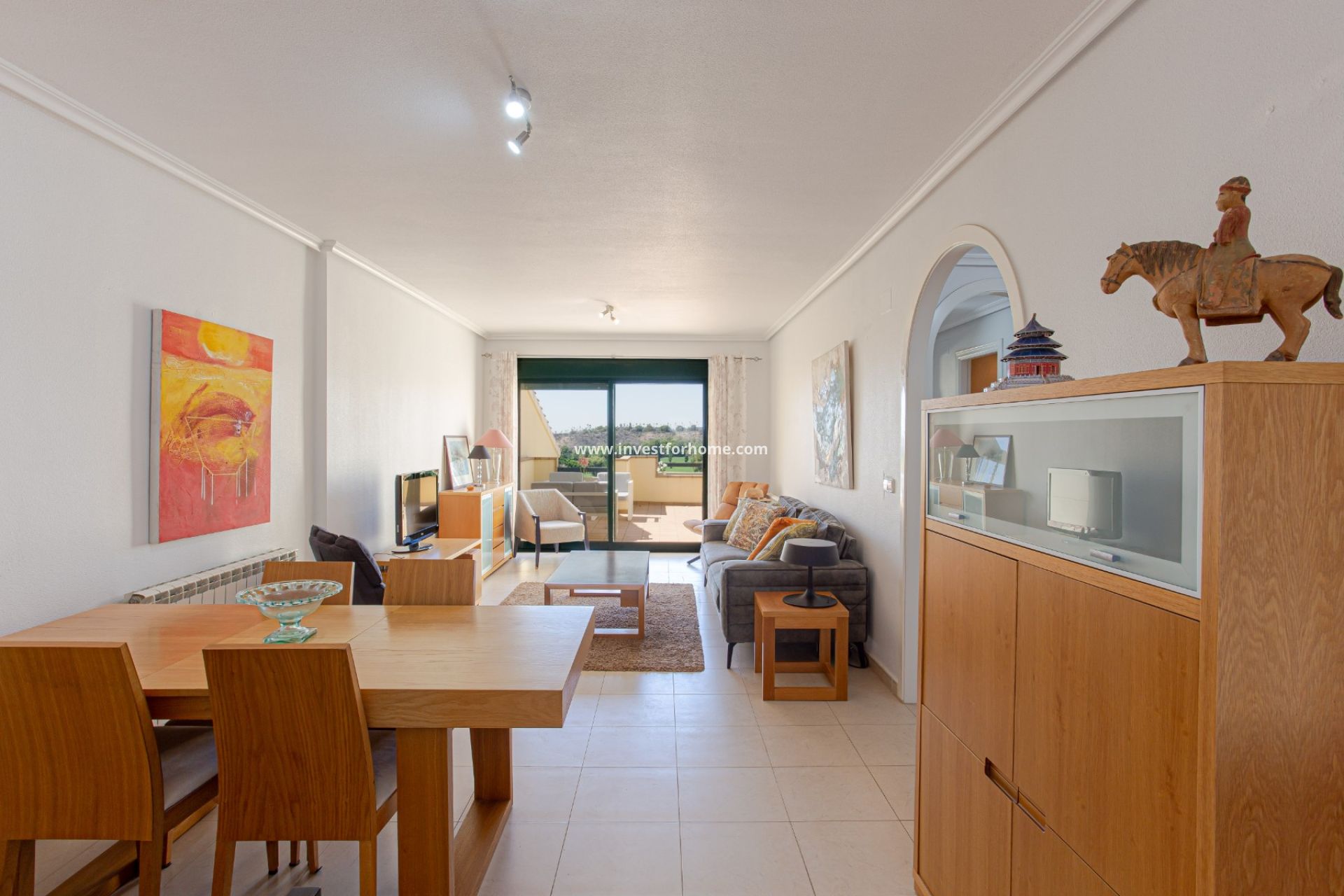 This apartment in Lomas de Campoamor is a rare opportunity: panoramic views, a secure setting, golf and beaches at your doorstep, and all amenities close by.