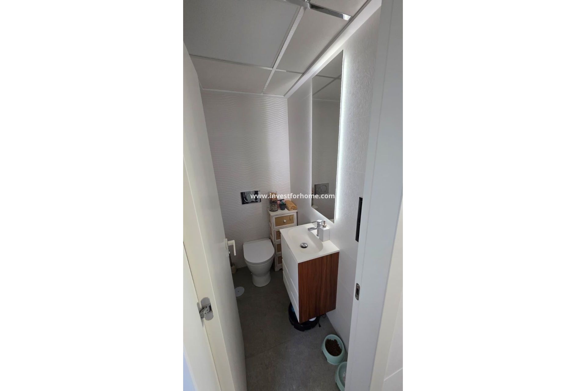 Discover this impressive pre-owned duplex in the exclusive area of Los Secanos, Guardamar del Segura, less than 800 meters from the main beaches. With a constructed area of 110 m² and south-facing, this property offers a perfect layout for enjoying the Mediterranean lifestyle. On the ground floor, you'll find a bright living room with access to a private terrace with skylights that provide natural light to the basement and a pergola; ideal for relaxing while admiring panoramic sea views. The first floor houses a guest toilet and a modern kitchen equipped with premium appliances, next to a gallery with a shower and laundry room. On the second level, there are two cozy double bedrooms, complemented by a full bathroom accessible from different areas. Finally, easily access your master bedroom located on the third floor, where you can once again delight in the spectacular views thanks to its spacious private terrace and exclusive en-suite bathroom. Extras such as central air conditioning (including split system), motorized blinds, and modern installations such as an aerothermal system ensure year-round comfort. Take advantage of the additional benefits: a communal pool surrounded by nearby natural landscapes, as well as easy access to nearby public transportation, schools within reach, etc. Certify your dreams! This home is perfect whether you are looking for a permanent or vacation residence. Contact us for more information.
