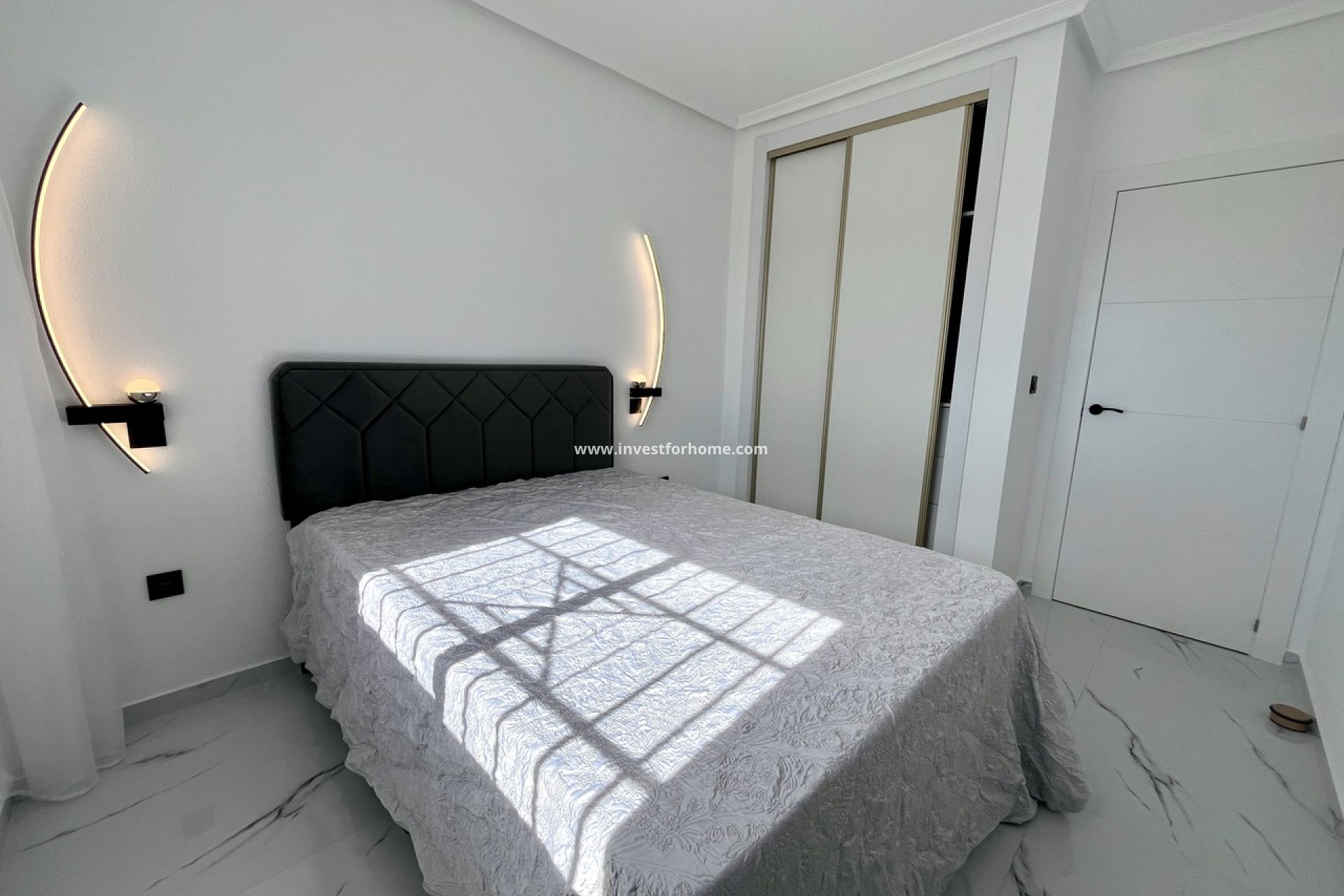 This beautifully renovated 1-bedroom, 1-bathroom penthouse apartment is perfectly positioned in the highly sought-after area of Playa Flamenca, within the desirable urbanization Zenia Star 1. Boasting a bright and open layout, the property offers a modern and stylish living space designed for comfort and convenience. The apartment enjoys a sunny south-facing orientation, allowing for plenty of natural light throughout the day, and features wonderful sea views that can be enjoyed from the main living area and terrace.The home has been completely refurbished to a high standard, combining contemporary finishes with practical design. The open-plan kitchen and living area create a welcoming atmosphere, ideal for relaxing or entertaining guests. A separate utility room adds extra functionality, while a private storage room provides additional space for personal belongings.Residents of Zenia Star 1 benefit from access to a beautifully maintained communal swimming pool and garden area — perfect for cooling off or enjoying the warm Mediterranean climate. The location is second to none, situated within easy walking distance of all local amenities, including supermarkets, cafés, restaurants, and the popular Playa Flamenca Commercial Centre. The famous La Zenia Boulevard shopping mall is just a short stroll away, offering a wide range of shops, dining options, and entertainment.For beach lovers, the beautiful sandy shores of the Mediterranean are only a 5-minute drive away, including the award-winning beaches of Playa Flamenca and La Zenia. Families will also appreciate the convenience of having the local Spanish school just 50 meters from the property.