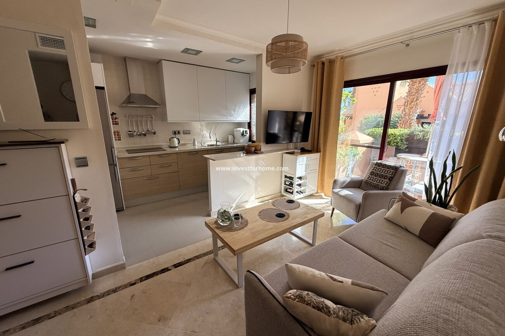 Cozy apartment in the prestigious Nueva Ribera district of Los Alcazares, located just 150 meters from the sea. The property is spread over two floors and offers a functional layout with two bedrooms, two bathrooms, and a bright, open-plan living room with a modern kitchen. Large windows provide excellent lighting and create a cozy atmosphere. A unique feature of this property are two terraces (one on each level) offering views of the sea and the surrounding greenery. The apartment also includes a private parking space in the garage and a storage unit.