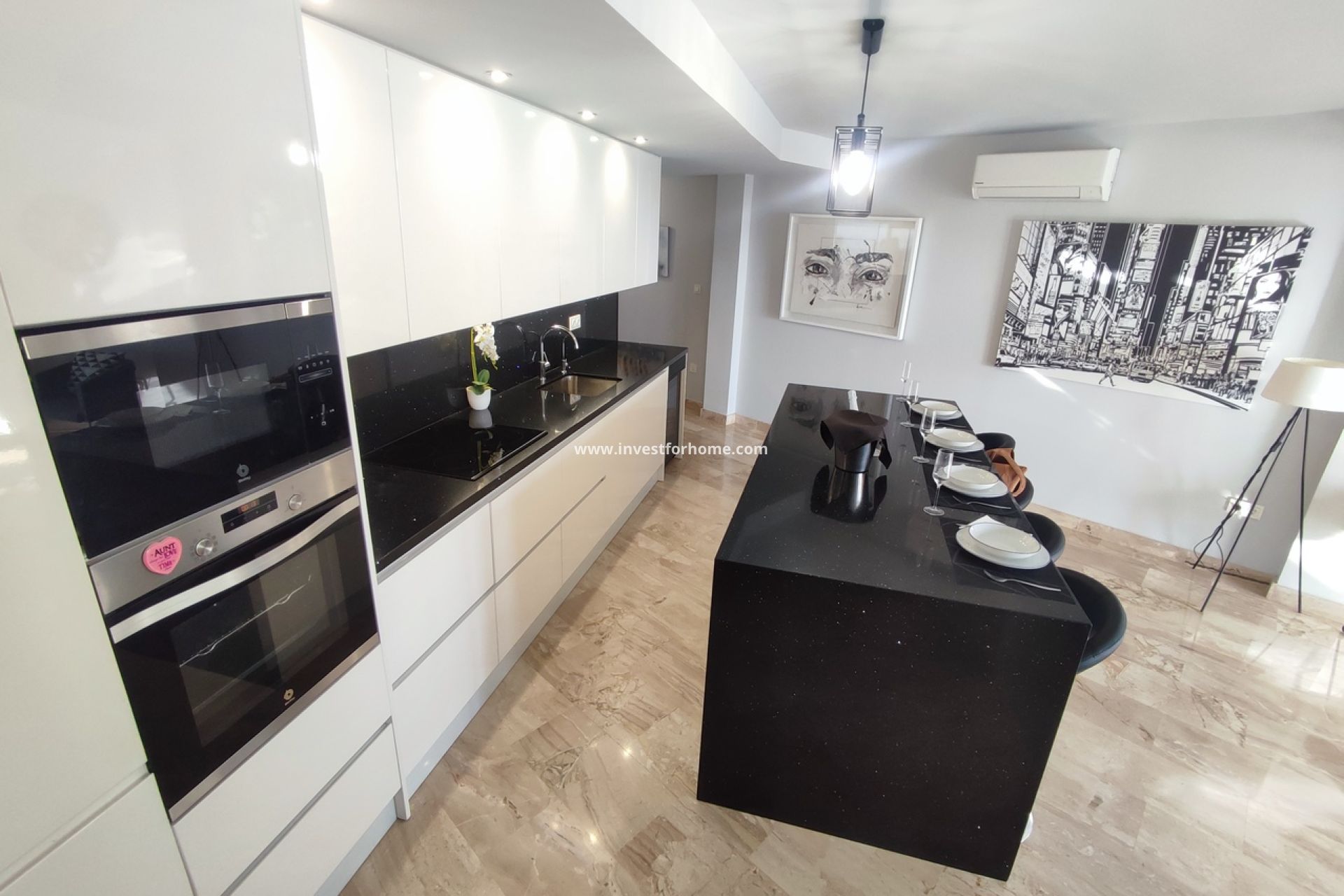 This luxury renovated 3 bedroom apartment is situated on the 4th floor with stunning views over the marina of Lo Pagan. Decorated and furnished to a very high standard the new open plan layout makes the most of cooking, entertaining, dining, relaxing and enjoying the sunny terrace with beautiful sea views. There are 3 bedrooms, a main bathroom with walkin shower and ensuite with roll top bath tub and walkin shower. There is a utility room for the boiler and washing machine.The property has hot & cold air conditioning throughout plus wall heaters in the main living room and master bedroom.Viewing is highly recommended to appreciate the high quality and facilities of this apartment.Sold fully furnished and ready to enjoy it would make an excellent home for permanent living or a stunning holiday apartment on the door step of the beaches, bars and restaurants.