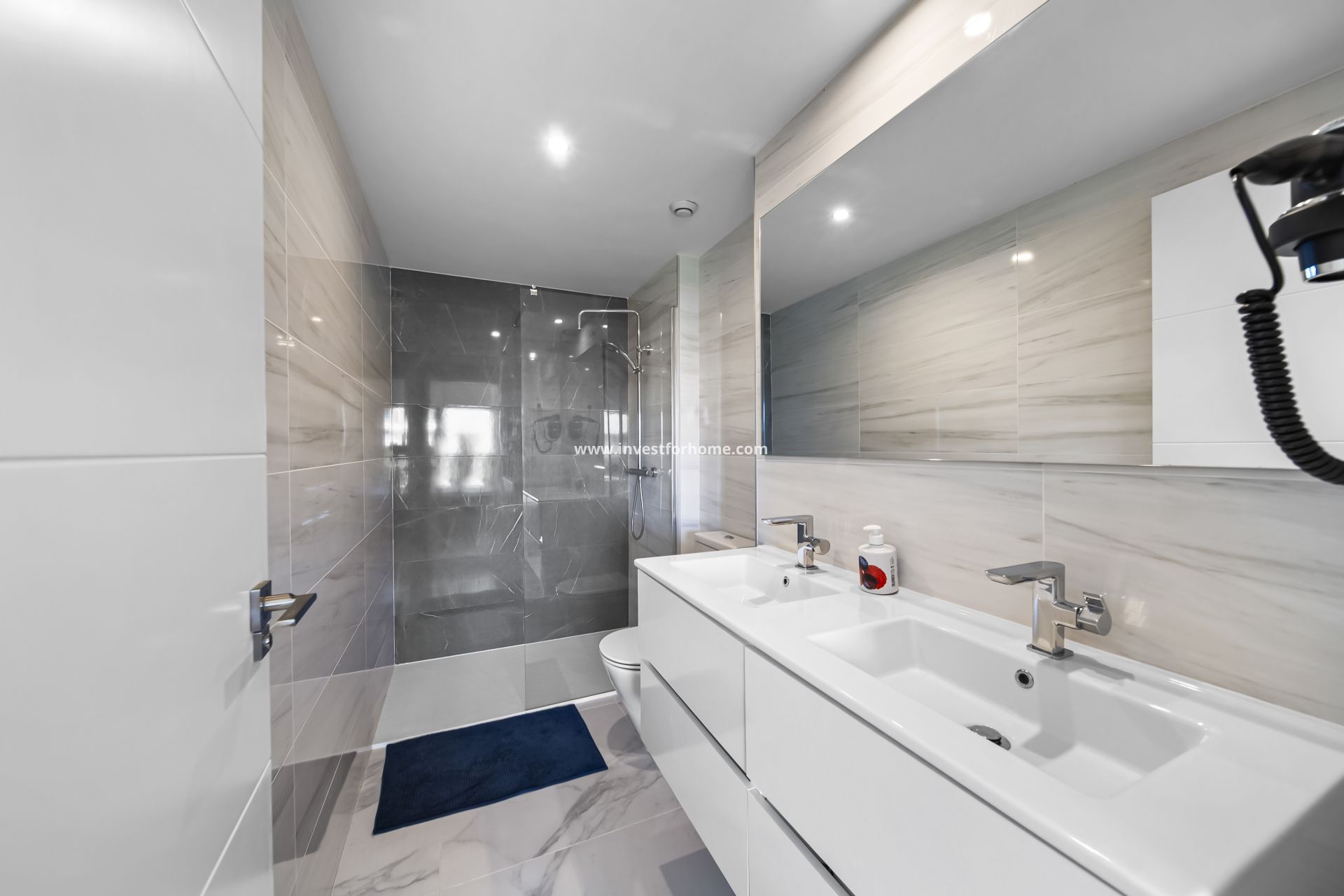 Ground floor apartment with garden by the sea in Punta Prima. Brand new apartment in the exclusive Posidonia residential complex, located on the seafront in Punta Prima. It features 2 bedrooms, 2 bathrooms, and a 46 m² east-facing garden terrace. It has 127 m² built, an underground parking space, and a storage room. Key features 2 bedrooms 2 bathrooms 127 m² built 46 m² garden terrace Ground floor East orientation Furnished Underground parking space Storage room Year of construction: 2024 Residential Seafront location 3 communal pools (including one infinity and one heated) Communal jacuzzi Children’s area Green areas 24 h security Location 150 m from Punta Prima beach 500 m from bars and restaurants 700 m from supermarket and shops 5 min by car to Zenia Boulevard Shopping Centre 15 min to Villamartín golf courses 40 min to Alicante Airport