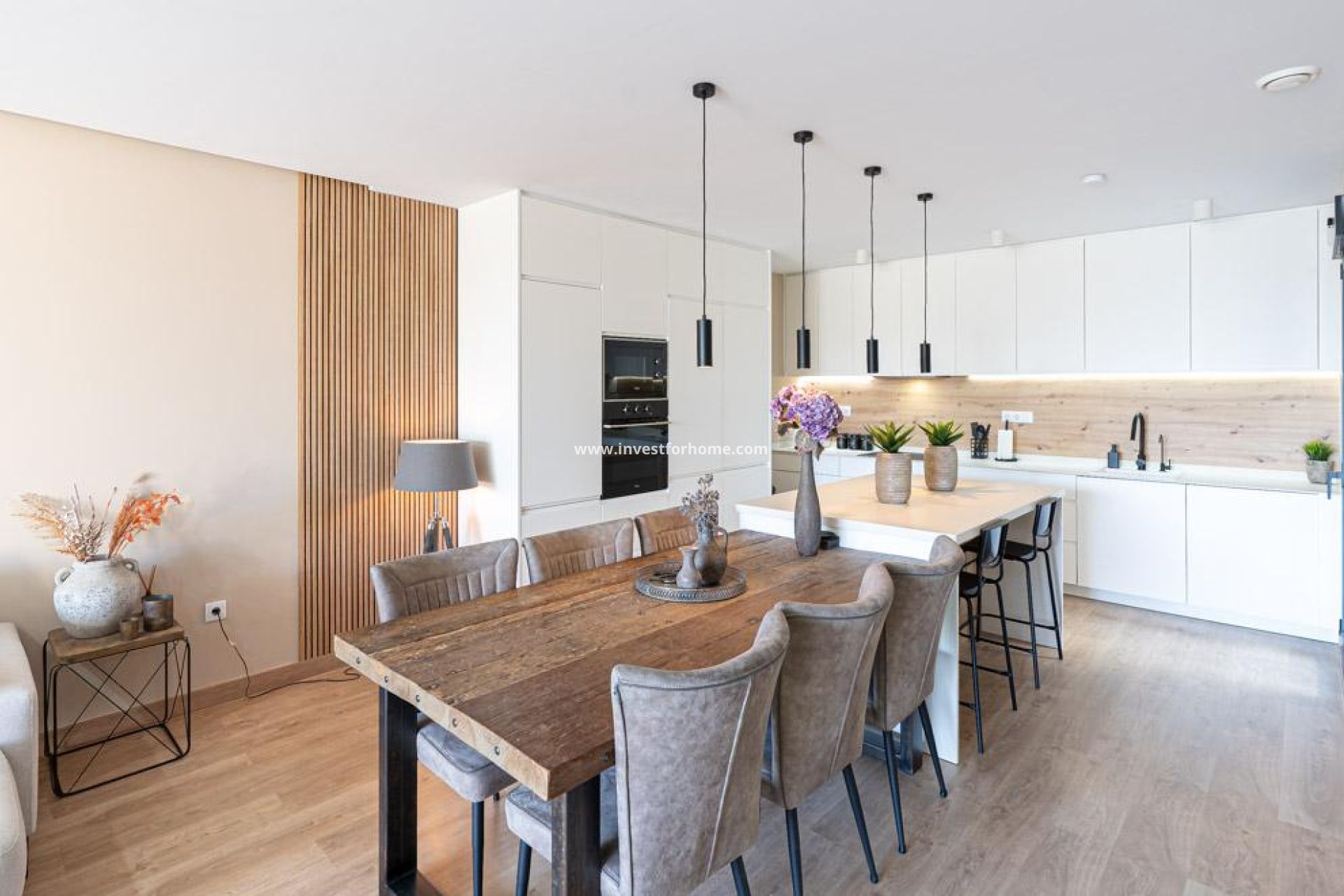 This terraced villa in Dolores is a warm and inviting resale home set within one of the most traditional towns of the Vega Baja. Designed over two floors and a solarium, it combines contemporary architecture with natural textures, creating a calm Mediterranean atmosphere from the moment you arrive. The outdoor spaces include a terrace and pool area located directly off the living room, creating a seamless indoor–outdoor connection, while a rear patio linked to the kitchen offers an additional corner for relaxed outdoor dining.The interior embraces a soft, welcoming style with a natural stone feature wall that mirrors the exterior finishes, complemented by wood-effect details that add warmth and character. The open-plan living, dining and kitchen area extends naturally towards the terrace and pool, making it ideal for everyday living as well as social gatherings. The master bedroom includes a walk-in wardrobe and an en-suite bathroom, while the remaining bedrooms and an additional bathroom are arranged to provide comfort and privacy. There is also a guest toilet on the main floor. The home is sold unfurnished, offering an opportunity to personalise the spaces, although the outdoor furniture is already included. Parking within the plot adds everyday convenience.Dolores is known for its friendly atmosphere, local traditions and complete range of services. It offers supermarkets, cafés, restaurants, sports facilities, parks and a weekly market that preserves the essence of a classic Spanish town. The surrounding countryside is ideal for cycling and leisurely walks, while the beaches of Guardamar del Segura are around 20 minutes away by car. Alicante Airport is approximately 30 minutes’ drive, and Murcia International Airport about 50 minutes, ensuring excellent connectivity for residents and visitors.