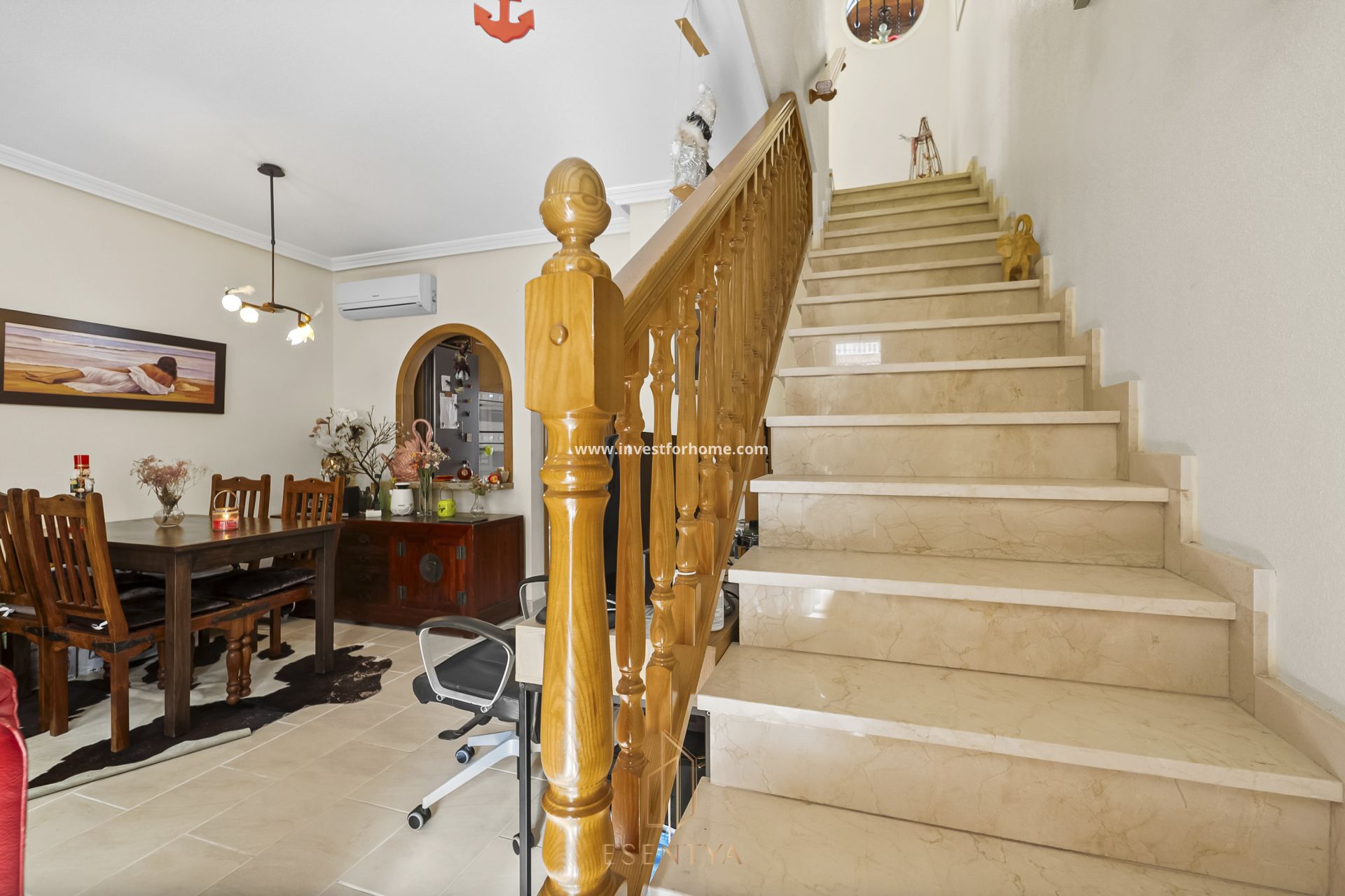 Townhouse located in the most exclusive area of Villamartín – Los Dolses. The property is distributed over two floors and features two bedrooms, two bathrooms, living room, kitchen and four terraces where you can enjoy the Spanish climate. The terraces face different directions, allowing you to choose between sun or shade at any time of the day. You will immediately notice that the current owner has maintained the property very well. From the rear terrace on the ground floor, there is direct access to one of the two communal swimming pools, perfect for a refreshing dip. One of the pools is heated and includes a jacuzzi area, allowing you to swim even during the winter months. Villamartín is a well-known area for golf enthusiasts, with no less than four golf courses nearby. The area is lively all year round and offers a wide range of restaurants, bars, shops and all necessary services, whether for holidays or permanent living. La Zenia Boulevard shopping centre, the largest on the coast, is just a few minutes away by car. Nearby you will also find entertainment options such as cinema, padel courts, bowling, mini golf and karting. The nearest beach is approximately 7 minutes by car, ideal for enjoying sunny days close to all amenities. Year of construction: 2008 Annual taxes: IBI: €188 Community fees: €670