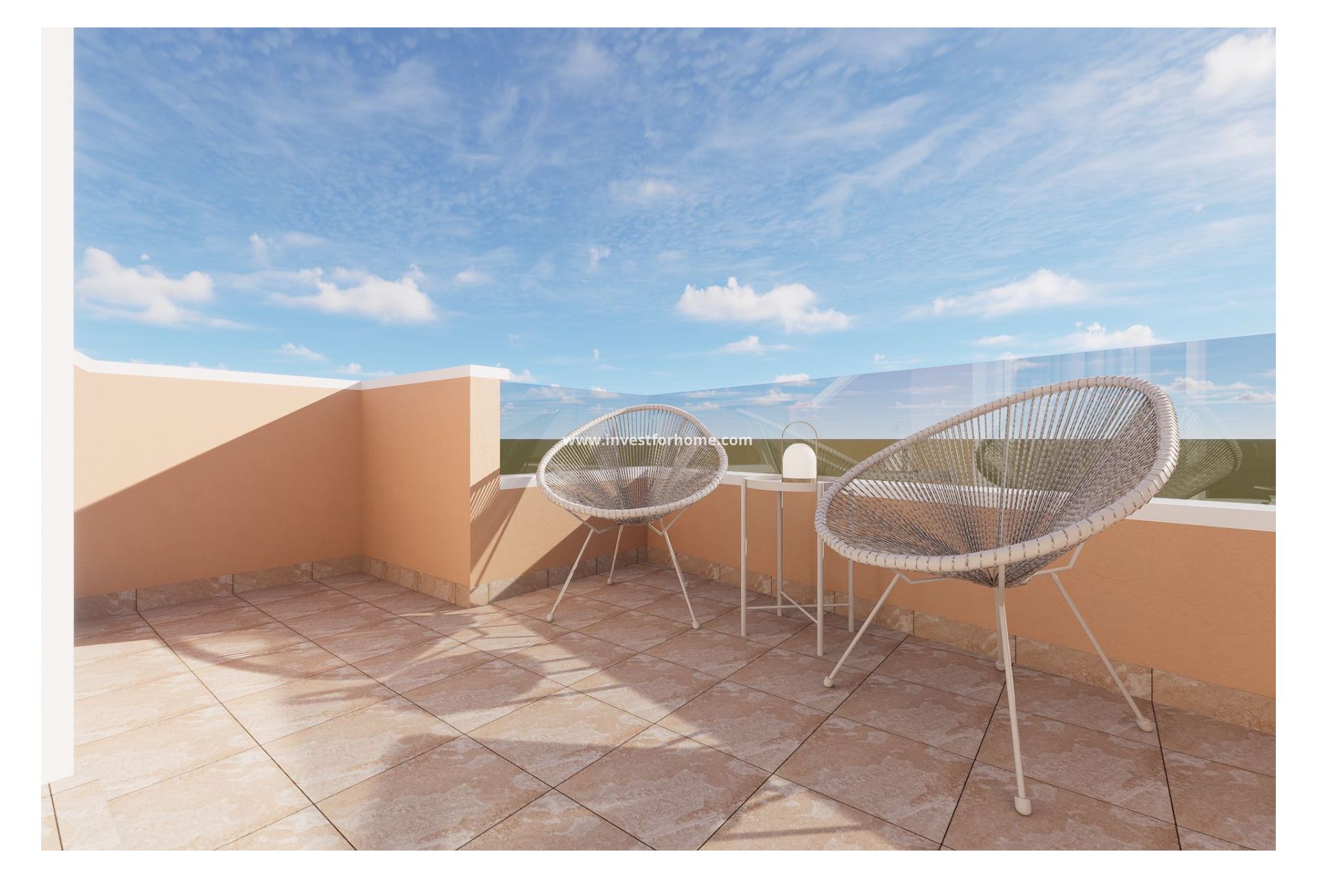 New build bungalows for sale in Pilar de la Horadada, located in a prime area of the Costa Blanca South just 2 km from the Mediterranean Sea. This residential complex offers modern homes designed for easy living and outdoor lifestyle.