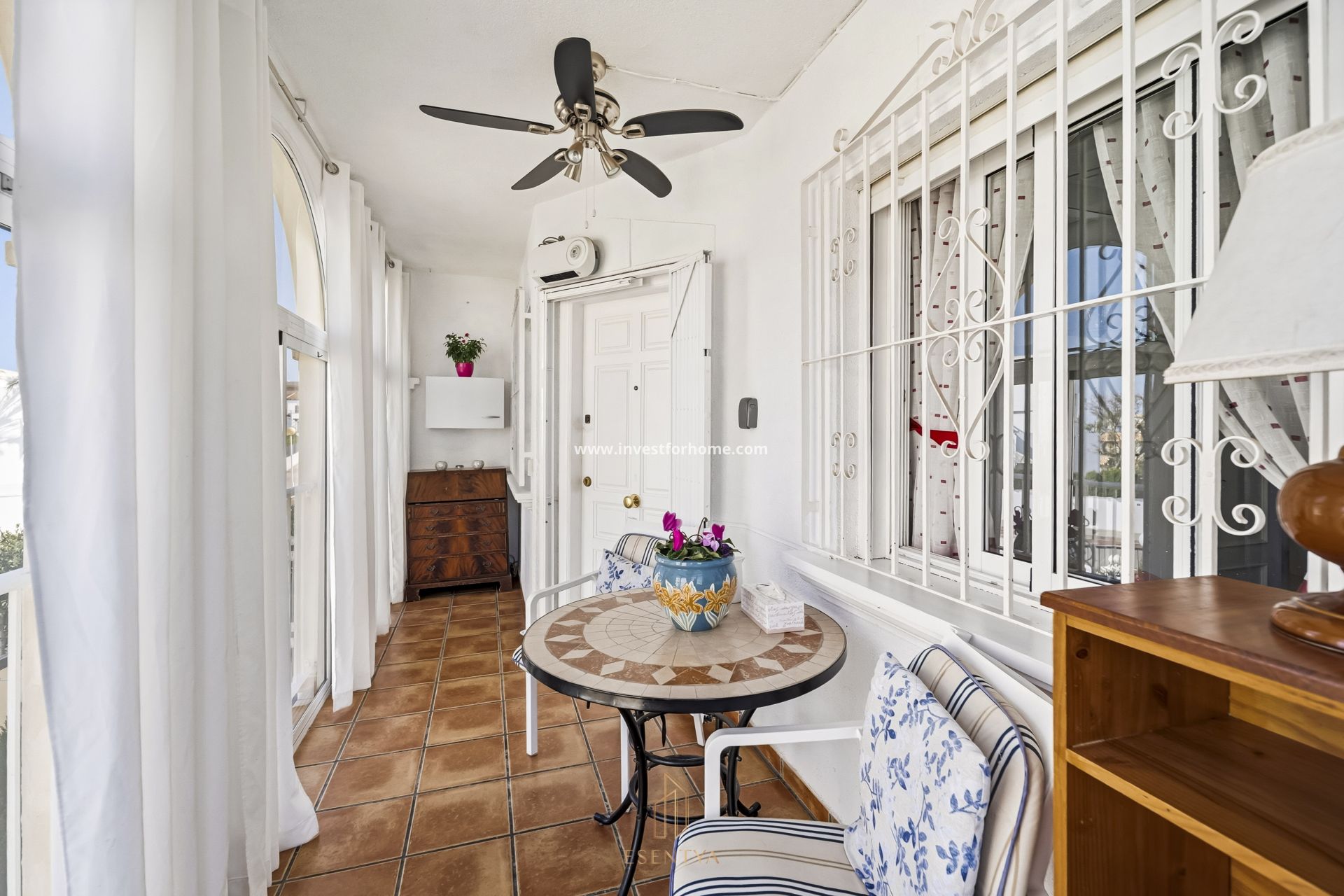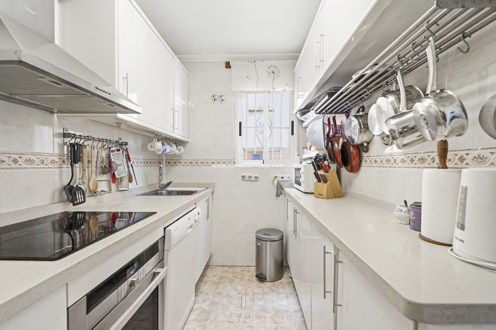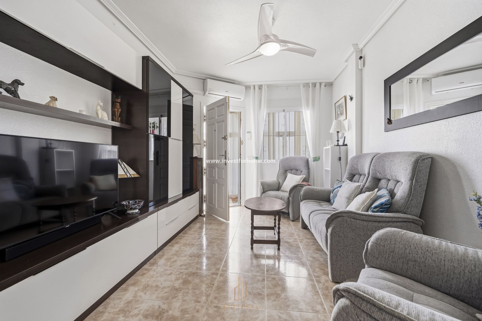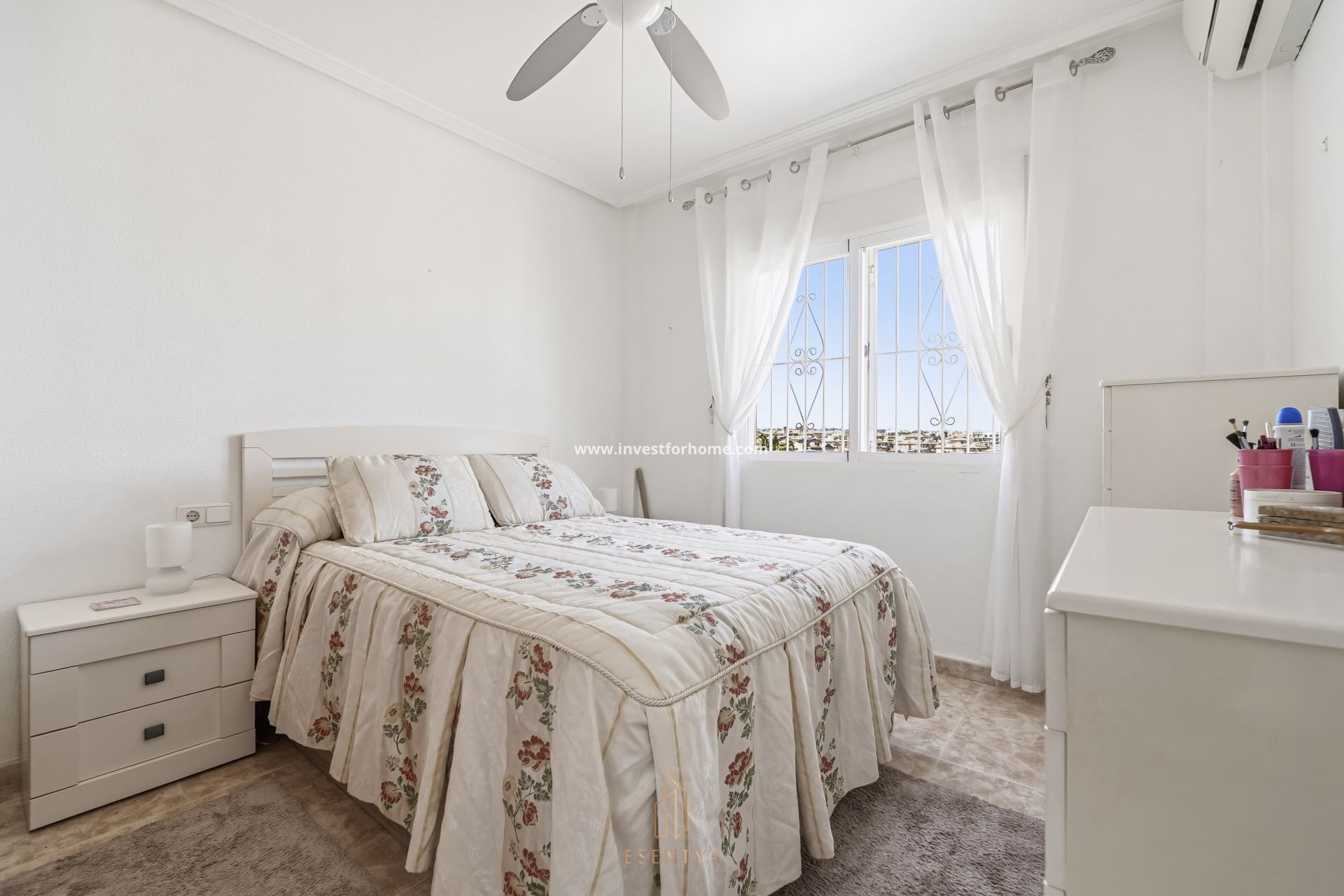 Duplex penthouse with solarium in La Regia, Orihuela Costa. Duplex penthouse distributed over two floors, located in a gated community with a communal swimming pool. Northeast-facing, sold furnished and equipped with air conditioning and appliances. The main floor includes a living room, kitchen, 2 bedrooms and 1 bathroom, as well as a glazed entrance. The upper floor features 1 bedroom, a full bathroom and access to a solarium. Located within walking distance of all services and just 2 km from La Zenia beach. Key features 3 bedrooms 2 bathrooms Duplex penthouse Solarium Garden Parking Main floor + upper floor Northeast orientation Sold furnished Air conditioning Appliances included Glazed entrance Communal swimming pool Gated community Walking distance to services 2 km from the beach 0.5 km to restaurants, bars and supermarkets 2.5 km to La Zenia Boulevard Annual costs: Community: €363.6 IBI: €196.36