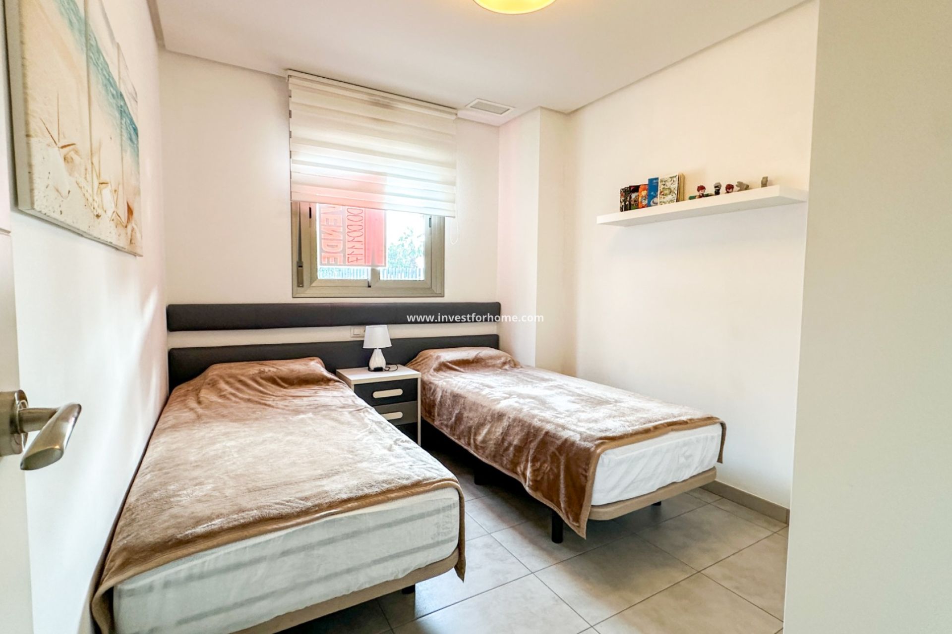 Two-bedroom, two-bathroom apartment for sale in a private and exclusive residential complex WITH TOURIST LICENCE. The complex, built in 2017, features an indoor and outdoor swimming pool, a spa and gym, and green areas. The apartment is being sold furnished. It is located just steps from supermarkets and restaurants, and is 3 minutes from Villamartin Golf Course and 5 minutes from La Zenia Beach.