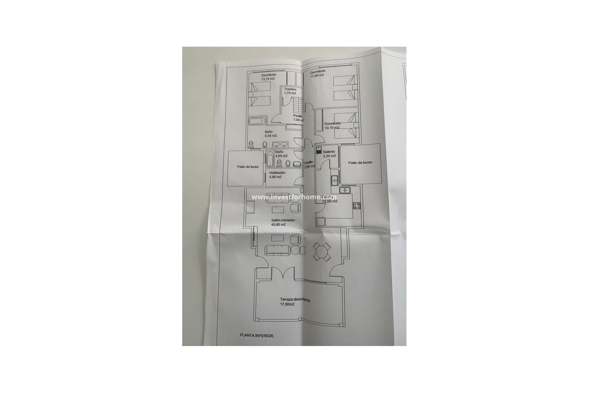 UNIQUE! Spectacular duplex penthouse with unobstructed views of the sea in Torrevieja.In a central area of Torrevieja and just 500 meters from Playa del Cura and Playa Los Locos, this duplex penthouse with 7 bedrooms and 4 full bathrooms is located on the 5th floor of a building with an elevator.Highlights:• All the rooms of the house are very spacious, thanks to its 216 m2 of constructed area.• 2 elelvators leading to the floor where you will find two seperate doors to the house and a third exclusive door leading to solarium for private direct access.• Large wooden windows with sun protection glazing and wooden shutters.• High ceilings, piped music throughout the house, fireplace in the living room, good construction quality, very good condition.• Barbecue with stone sink on the solarium.• Unobstructed views of the sea from the solarium.• Classic furniture and solid and antique.• Communal swimming pool.• Possibility of having 2 garage spaces for an extra price.Distribution of the property:On the ground floor it has a spacious living room, independent kitchen with gallery, pantry, 3 double bedrooms, 2 full bathrooms and a terrace.On the first floor, there are 4 bedrooms, 2 full bathrooms (one of them with a round SPA-type bathtub), a large terrace and a private solarium.TABLE OF BUILT SURFACESAttic floor area without terraces 254.50 m2Terrace surface: 183.05 m2Total area: 437 m2BREAKDOWN OF USEFUL SURFACESGround floor 133.35 m2 useful housing + 17.80 m2 terraceFirst floor 78.5 m2 useful housing + 55.95 m2 terraceCovered floor 109.30 m2SPECIAL FEATURES:This exclusive penthouse was built by the founder of a construction company with a recognized business history in the province of Alicante, more than 40 years in the real estate sector guaranteed his experience. The house was used as a holiday home by the businessman's family, although it is prepared to be used as a frequent or permanent home.Its large size offers various possibilities. It could be easily divided into 2 independent apartments or, have an apartment with 3 bedrooms and 2 bathrooms on the ground floor and use the upper floor for a professional office.ENVIRONMENT AND SERVICESIn the near surroundings we will find large food stores, pharmacies, banks, cafes, hairdressers, etc. In the center of Torrevieja located a few minutes away we have multiple shops and service companies.COMMUNICATIONSThe Torrevieja central bus station is close to the house and on the N-332 national road or the AP7 motorway we can visit the different cities of the Costa Blanca.Alicante International Airport with regular flights to all of Europe is a 40-minute drive away.The owner listens to purchase proposals, book your appointment now to visit this exclusive penthouse.