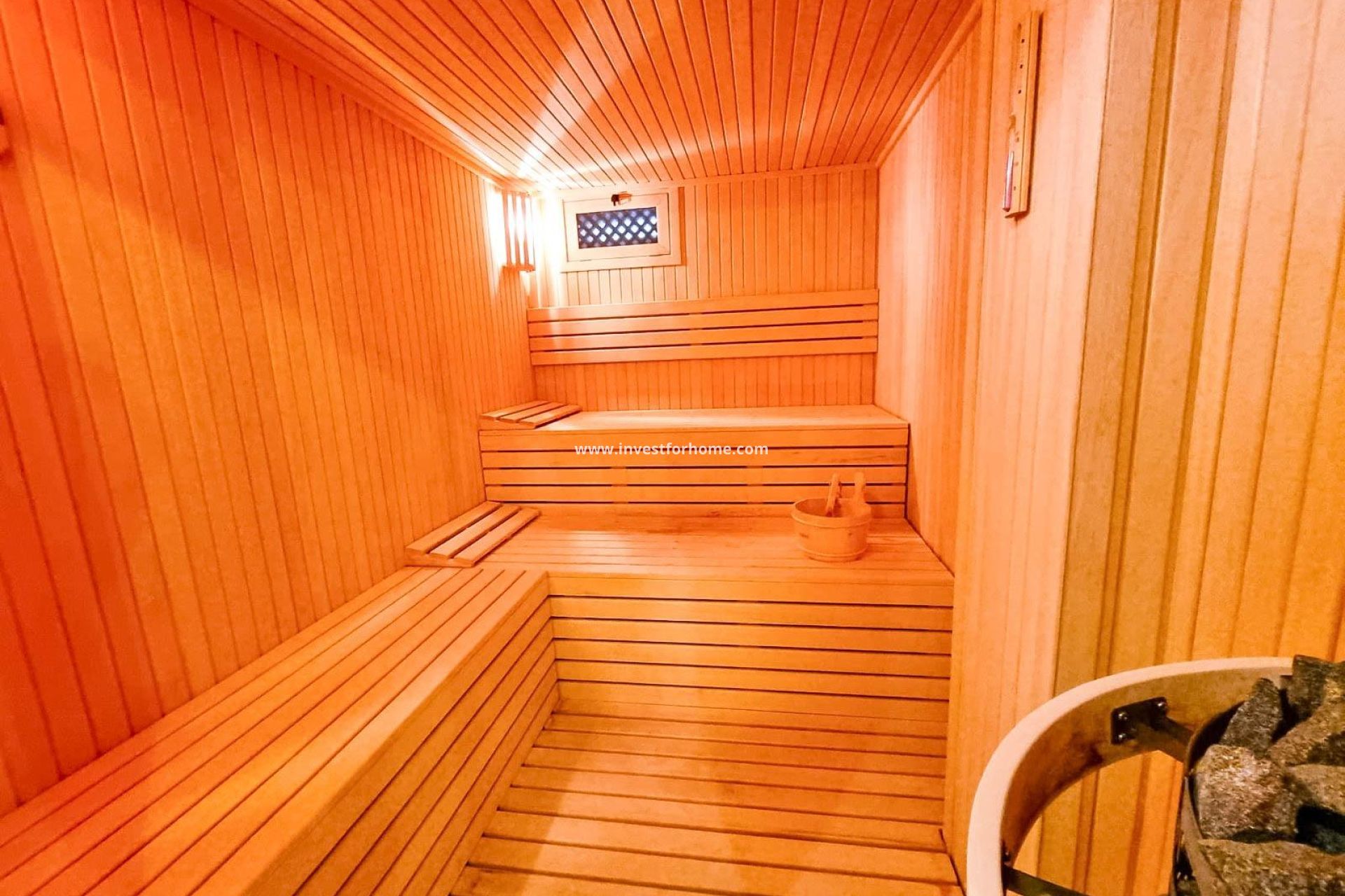 Rymlig villa till salu med 5 sovrum, två vardagsrum (ett i halvkällaren), fyra badrum, bastu, danssal och gym. Den totala byggytan är 367 m² fördelat på tre plan, på en tomt på 625 m² med privat pool och grillplats. Villan ligger i ett av Torreviejas mest prestigefyllda områden – Molino Blanco (La Mata). Avståndet till stranden La Mata är endast 250 meter i rak linje. Säljs fullt möblerad, med alla hushållsapparater, dekoration, central luftkonditionering och genomtänkt belysning.