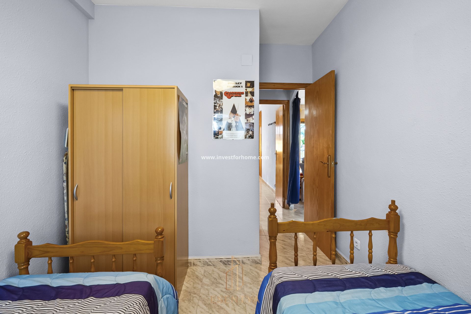 Lägenhet på bottenvåningen, 600 m från stranden. Möblerad bostad med 2 sovrum i ett lugnt bostadsområde omgivet av tallar och natur. Den har separat kök, östlig terrass och luftkonditionering. Gemensamt område med pool (valfritt), och det är gångavstånd till havet och lokala bekvämligheter. Perfekt för dig som söker närhet till både strand och natur. Viktiga egenskaper: 2 sovrum 1 badrum 65 m² byggd yta Terrass Separat kök Luftkonditionering Möblerad Pool i området (valfritt) Östlig orientering Byggnadsår: ej specificerat Årliga kostnader: IBI: €320 Föreningsavgift: €400 Plats: 50 m från restaurang 600 m till stranden 700 m till La Matas naturpark