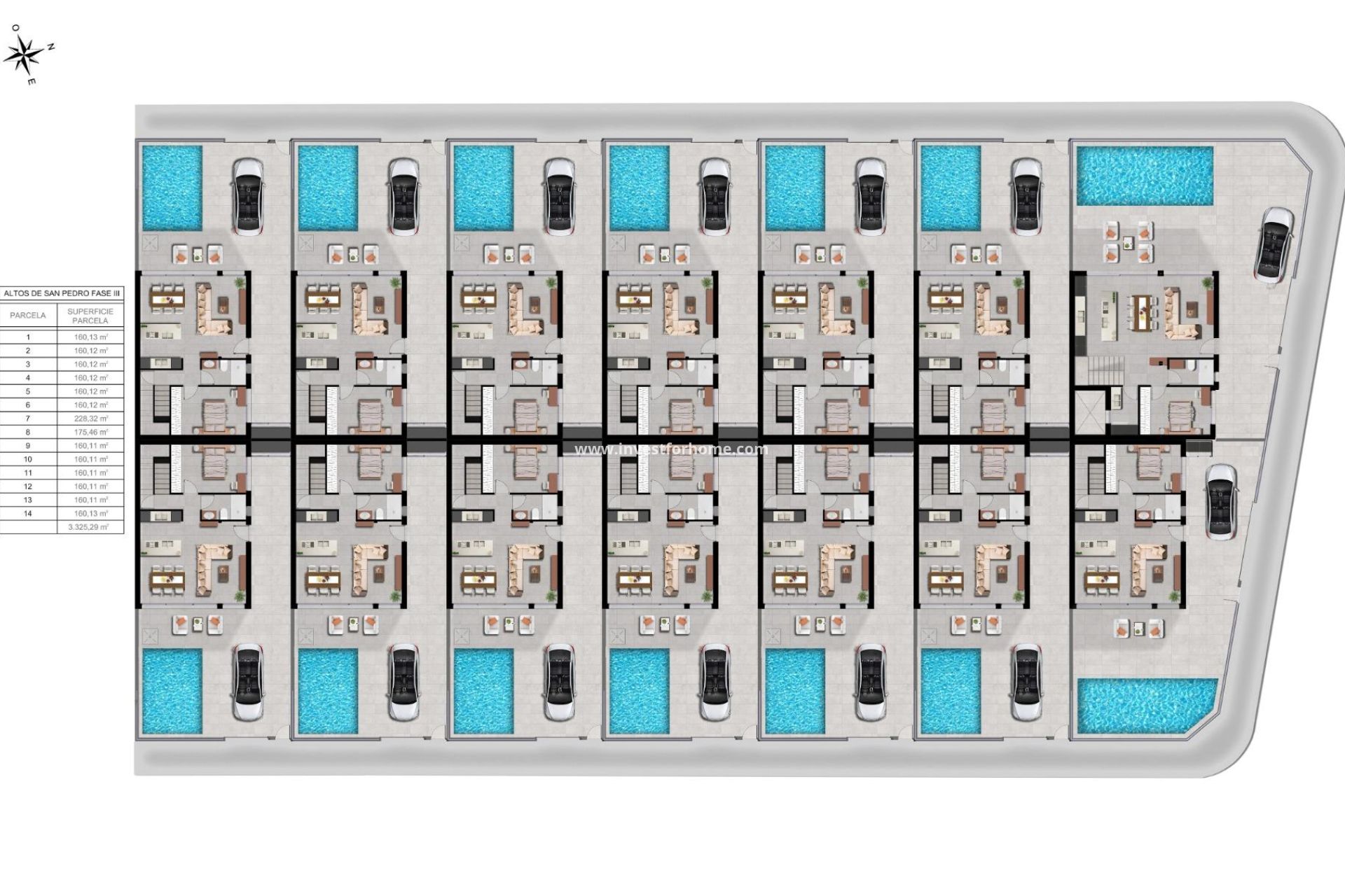 Moderna nybyggda villor med privat pool i San Pedro del Pinatar Modern design och högsta livskvalitet Upptäck den tredje fasen av detta exklusiva bostadsprojekt i San Pedro del Pinatar, där modern arkitektur möter komfort och funktionalitet. Dessa 14 parhusvillor är designade i minimalistisk stil med högkvalitativa ytbehandlingar och erbjuder en elegant och sofistikerad boendeupplevelse på Costa Calida. Varje villa har 3-4 rymliga sovrum, 3 badrum, privat pool, terrasser och en privat trädgård, vilket skapar den perfekta miljön för avskildhet, avkoppling och medelhavsliv utomhus. San Pedro del Pinatar är en av de mest eftertraktade städerna i Mar Menor-området, känt för sina naturliga saltsjöar, lugna stränder och behagliga klimat året runt, vilket gör det idealiskt för både permanent boende och semesteranvändning. Öppen planlösning utformad för det moderna livet Villorna är omsorgsfullt fördelade med ett öppet kök som ansluter till ett ljust vardagsrum och matrum. Stora fönster i vardagsrummet med motoriserade persienner ger direkt tillgång till poolområdet och låter naturligt ljus flöda in i de inre utrymmena. Viktiga egenskaper för varje fastighet inkluderar: 3 sovrum med inbyggda garderober 3 fullt utrustade badrum med tvättställ, speglar och duschväggar Möblerat kök med Balay-vitvaror Privat pool och trädgård LED-belysning inomhus och utomhus Terrasser på första våningen och valfritt solarium på taket Parkeringsplats på tomten Aerotermiskt system för varmvatten Solcellspaneler för förbättrad energieffektivitet Förinstallation av luftkonditionering Dessa bostäder är utformade för att kombinera hållbarhet, komfort och modern stil i varje detalj. Utmärkt läge nära stränder och service San Pedro del Pinatar ligger mellan Mar Menor och Medelhavet och är ett paradis för strandälskare och vattensportentusiaster. Staden erbjuder en livlig småbåtshamn, naturliga lerbad, butiker, restauranger, idrottsanläggningar och utmärkta tjänster året runt. Stränderna vid Mar Menor 3 km Medelhavets stränder 5 km Dos Mares shoppingcenter 5 km Lo Romero Golf 10 km Roda Golf 15 km Murcia Corvera flygplats 30 km Alicante flygplats 80 km San Pedro marina 4 km Ett idealiskt hem för livsstil och investering Tack vare sitt läge, sin design och sina energieffektiva funktioner är dessa villor ett utmärkt val som permanentbostad, semesterbostad eller uthyrningsinvestering i ett av de mest attraktiva områdena på Costa Calida. Kontakta oss idag för mer information eller för att boka en visning och säkra din nya villa i San Pedro del Pinatar.