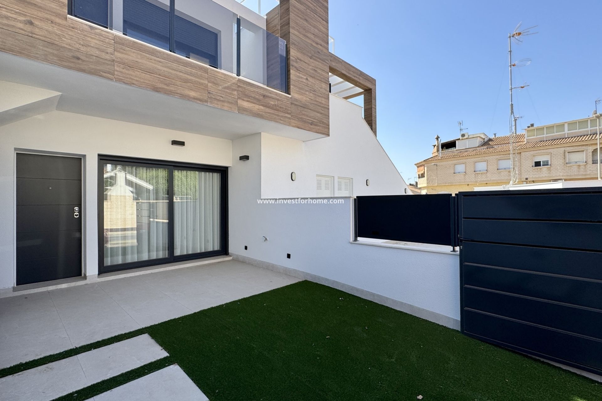 Beläget i den charmiga orten San Pedro del Pinatar erbjuder detta bostadsområde ett exklusivt urval av höga och låga bungalows. Med totalt fyra fastigheter är varje designad för att ge maximal komfort och funktionalitet. Närheten till havet, endast 1 km bort, gör det möjligt att njuta av havsbrisen och en privilegierad naturlig miljö. Dessutom ligger flygplatsen 44 km bort, vilket underlättar tillgången till internationella förbindelser. Dessa bostäder är idealiska för dem som söker en balans mellan lugn och tillgänglighet, i en miljö som kombinerar det bästa av Medelhavskusten med närliggande stadstjänster. UTOMHUSOMRÅDEN Utomhusområdena i dessa fastigheter är utformade för att maximera njutningen av det medelhavsklimatet. Varje bungalow har en privat trädgård, perfekt för avkopplande stunder utomhus. Terrasserna erbjuder ett extra utrymme för att njuta av måltider utomhus eller bara koppla av. Dessutom finns möjligheten att inkludera en privat pool, idealisk för att svalka sig under varma sommardagar. Solariumet är en annan attraktion, vilket ger ett extra utrymme för att sola eller njuta av utsikten över omgivningen. Förekomsten av elektriska persienner tillför en touch av modernitet och bekvämlighet till bostäderna. INOMHUSOMRÅDEN Interiören i bungalowerna är designad med fokus på komfort och funktionalitet. Golv i porslinskeramik ger en touch av elegans och är lätta att underhålla. Varje fastighet har två sovrum och två badrum, vilket erbjuder ett lämpligt utrymme för små familjer eller par. Inkluderingen av luftkonditionering garanterar en behaglig miljö året runt. Inbyggda garderober ger effektiv förvaring, medan de inkluderade vitvarorna underlättar vardagen. Videoporttelefonen lägger till en extra nivå av säkerhet och bekvämlighet, vilket gör det enkelt att kontrollera åtkomsten till bostaden. GEMENSAMMA OMRÅDEN De gemensamma områdena i bostadsområdet är designade för att erbjuda en komplett upplevelse av välbefinnande och fritid. Invånarna kan njuta av stora trädgårdsområden, perfekta för lugna promenader eller för att barnen ska kunna leka utomhus. Den gemensamma poolen är en idealisk plats för att umgås och svalka sig under varma dagar. Dessutom är det gemensamma gymmet utrustat för dem som vill upprätthålla sin träningsrutin utan att lämna hemmet. De minsta har sin egen plats i lekparken, vilket garanterar nöje och säkerhet i en kontrollerad miljö.