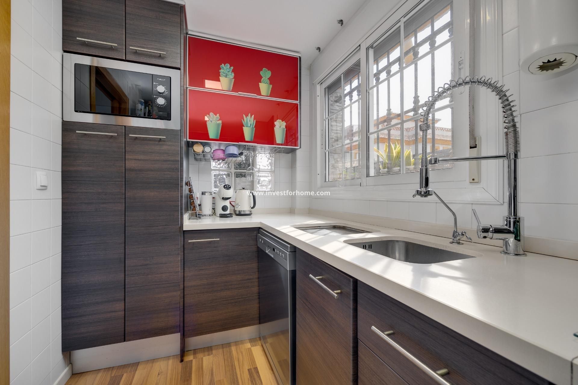 Upptäck denna charmiga fristående villa belägen i La Herrada i Los Montesinos, ett lugnt bostadsområde perfekt för dig som söker livskvalitet, privatliv och närhet till alla bekvämligheter. Dessutom ligger den bara 10–15 minuters bilresa från stränderna i Torrevieja och stadens centrum. Bostaden utmärker sig genom sitt utmärkta skick och omsorgen om varje detalj, vilket gör den inflyttningsklar från första dagen. När du kommer in på tomten möts du av en vacker privat trädgård med pool – den perfekta platsen för att njuta av det medelhavska klimatet. Poolen har strategiskt placerade barstolar som skapar en originell barzon i vattnet, perfekt för att dela speciella stunder. Utomhus finns även en grillplats och ett praktiskt förråd. Villan är fördelad på tre välplanerade våningar. På bottenvåningen finns ett rymligt och ljust vardagsrum med matplats och direkt utgång till trädgården, vilket skapar en perfekt koppling mellan inne och ute. Här finns också ett fullt utrustat separat kök, ett dubbelrum och ett komplett badrum med dusch. På första våningen finns två sovrum, varav ett är extra rymligt och har en praktisk kontorsdel. På denna våning finns också ett komplett badrum med dusch. På översta våningen finns en tvättdel och tillgång till ett spektakulärt privat solarium med imponerande panoramautsikt över den Rosa Lagunen – en privilegierad plats för att njuta av solnedgångar och naturen. Bostaden har dessutom luftkonditionering, uppvärmning och säljs fullt möblerad och utrustad. En unik fastighet som kombinerar komfort, privatliv och ett privilegierat läge. KONTAKTA OSS!