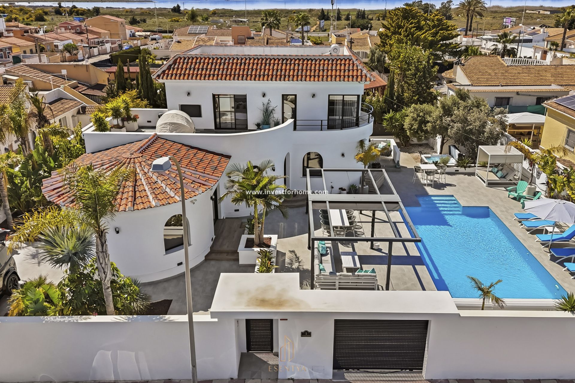 Helrenoverad fristående villa med uppvärmd pool i San Luis. Fastighet utbyggd i december 2024, belägen på en tomt om 900 m² med generösa utomhusytor. Den har 6 sovrum och 5 badrum, varav 4 en suite, fördelade på två plan. Entréplanet erbjuder ett ljust vardagsrum med stora fönster, öppet kök, 3 sovrum, kontorsyta och extra utrymme som kan användas som ett sjunde sovrum. Övre plan har 3 sovrum med egna badrum samt en terrass med utsikt över saltsjön. Utomhus finns en uppvärmd pool med automatiskt skydd, trädgård med etablerad växtlighet, sol- och skuggzoner samt ett fristående förråd som används som gym. Viktiga egenskaper: 6 sovrum 5 badrum 250 m² byggd yta Tomt på 900 m² Utbyggnad klar december 2024 Privat uppvärmd pool med automatiskt skydd 4 sovrum med eget badrum Öppen planlösning kök Vardagsrum med stora fönster Kontorsyta Möjlighet till ett 7:e sovrum Terrass med utsikt över saltsjön Trädgård med fruktträd och planteringar Sittplatser med pergola Förråd / gym Tvättstuga och separat teknikrum Utrustning: LG luftkonditionering via kanaler (båda våningar) Panasonic luftkonditionering i flera rum Luftkonditionering i hela bostaden Golvvärme i master bedroom, kök och övre sovrum Jacuzzi / spa för 5 personer Vitvaror: Beko torktumlare EAS Electric tvättmaskin AEG integrerad kyl/frys AEG integrerad mikrovågsugn AEG ugn AEG häll Plats: Gångavstånd till barer och restauranger 350 m: Alingui San Luis 350 m: Lilla Svensken 350 m: Bombay Spice 850 m: Campobello 850 m: Gran China 1,6 km: Carmens 2,2 km: Siciliana 2,2 km: Kings Curry Nära stormarknader Område med park, skatepark och fotbollsplan Vattenpark i San Luis (sommar) 15 minuter med bil till Guardamar, Moncayo och La Mata