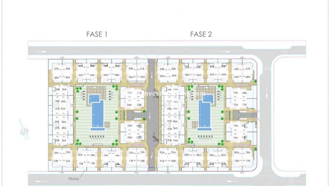NYBYGGDA BOSTÄDER MED BUNGALOWLÄGENHETER I LOS BALCONES, TORREVIEJA Nybyggt bostadsområde med magnifik utsikt över den rosa saltsjön i Los Balcones. Komplexet består av 104 bungalowlägenheter med 2 och 3 sovrum, bungalows på översta våningen har privata solarier med panoramautsikt över saltsjön och bungalows på bottenvåningarna har stora terrasser med utsikt över grönområdet. Dessa bungalows delar vackra grönområden och 2 stora pooler. Valfri underjordisk parkering och förvaringsutrymmen finns tillgängliga. Detta bostadsområde erbjuder modern design, utvalda material, lägenheter som är färdigställda enligt mycket höga specifikationer med endast material av högsta kvalitet. Bostadsområdet kommer att byggas upp mot en sluttning, på så sätt är utsikten och även luften klar och av unik kvalitet. Los Balcones ligger strax utanför Torrevieja med alla tillgängliga tjänster, bara 5 minuter från Playa de Los Náufragos, stormarknader, skolan och shoppingcentret La Zenia Boulevard, och en minut från Torreviejas universitetssjukhus. Dessutom hittar du 4 golfbanor inom en kort bilresa, inklusive den prisbelönta Las Colinas Golf & Country Club. Komplexet ligger 40 minuter från Alicantes flygplats och 1 timme från Murcia - Corveras flygplats.