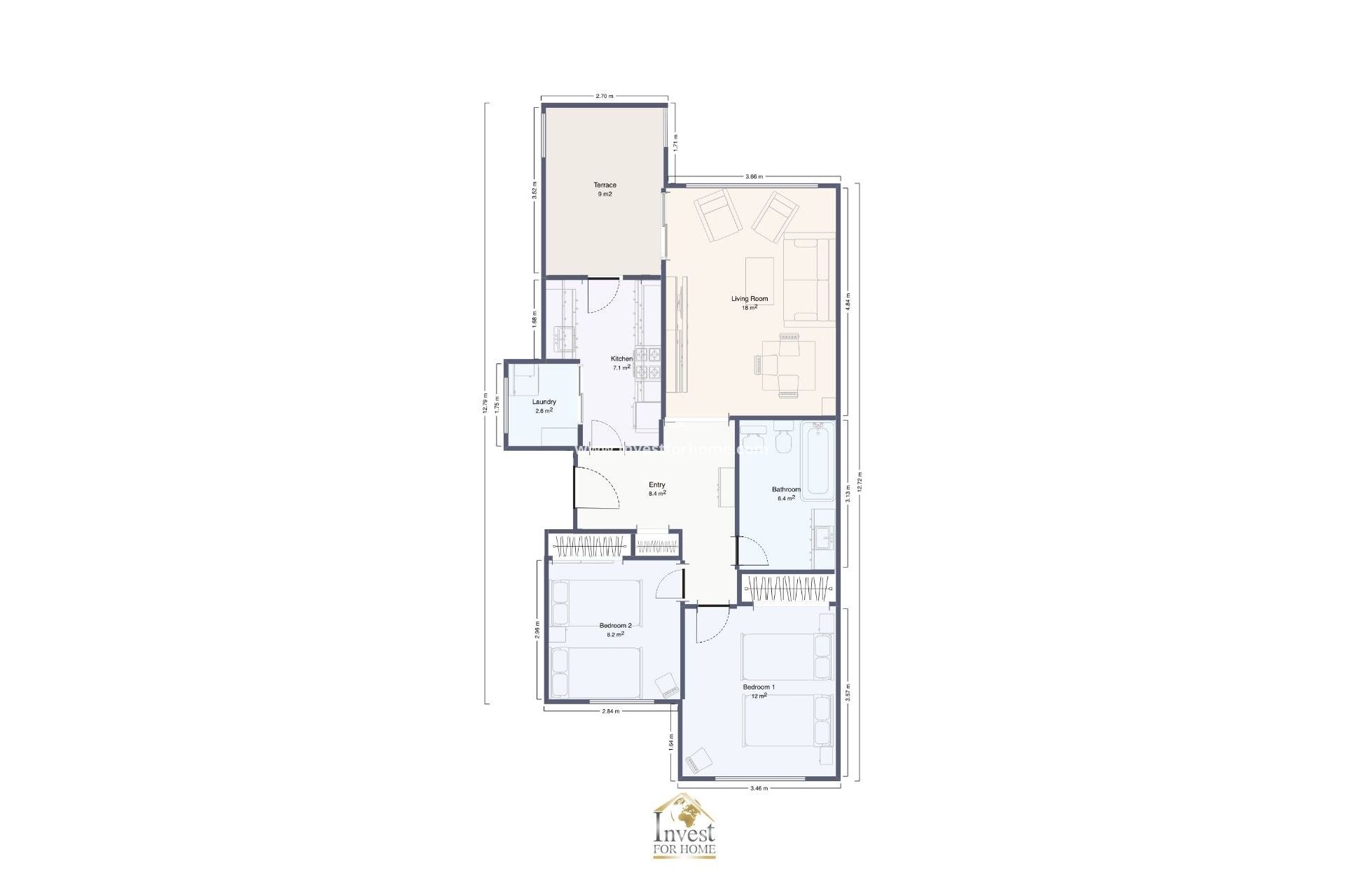✔ 2 dubbelrum med inbyggda garderober