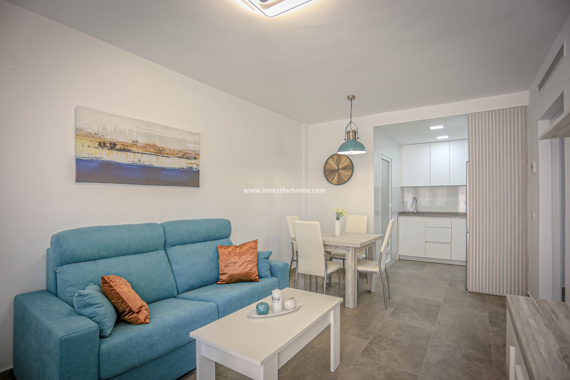 Precioso apartamento en planta baja en complejo residencial privado en Playa Flamenca, Orihuela Costa. Tiene una ubicación ideal cerca del centro comercial Zenia Boulevard, con todos los servicios a poca distancia, como restaurantes, bares, el ayuntamiento, el mercado de Playa Flamenca y a solo 5 minutos de la playa.