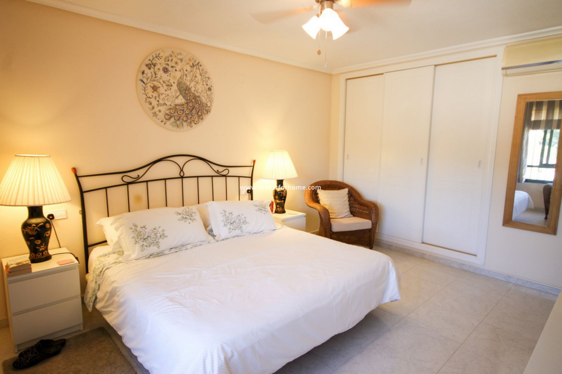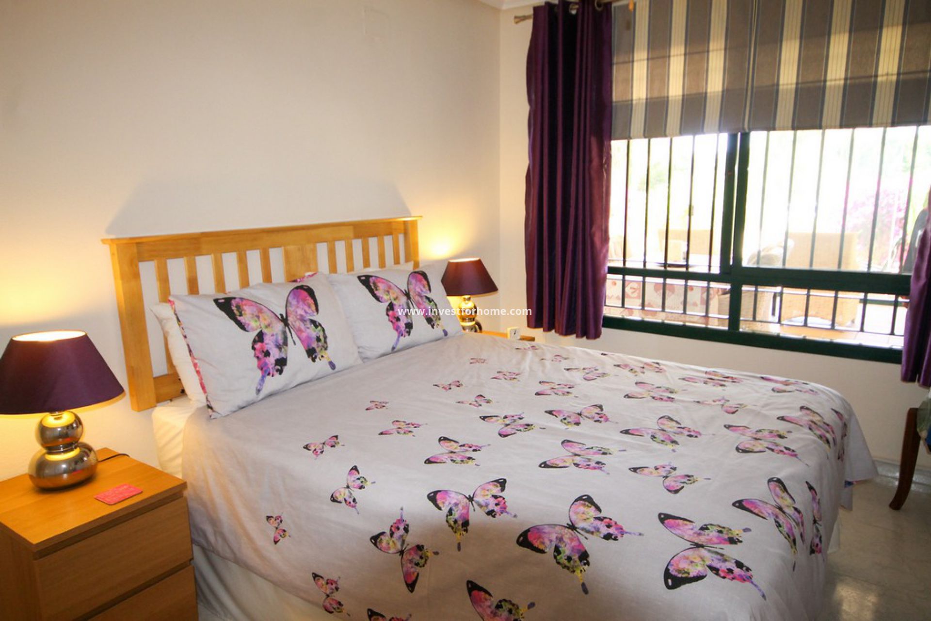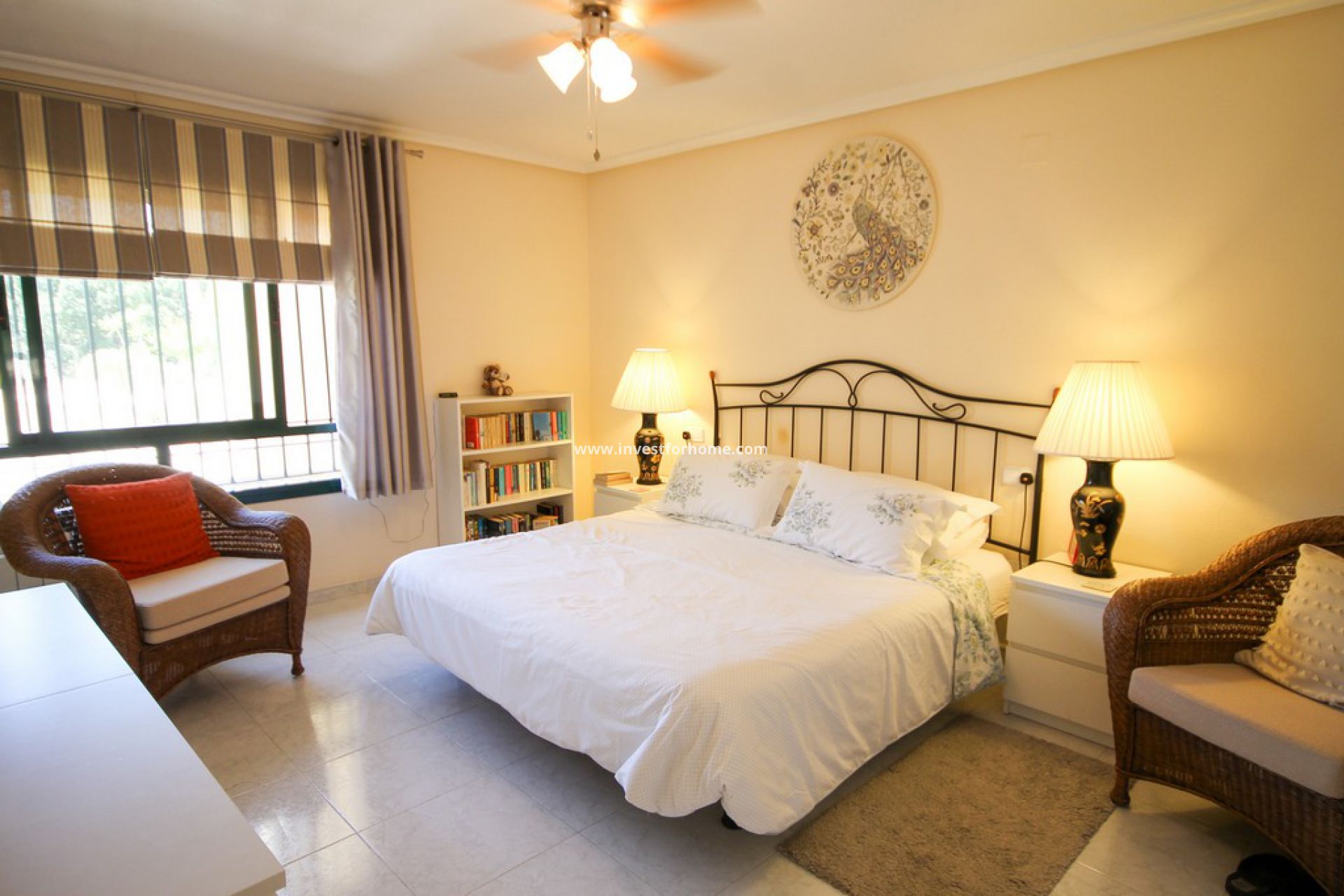 Al entrar al vestíbulo se accede a una cocina independiente con muchos armarios y equipamiento nuevo. Hay un lavadero en la parte trasera. El vestíbulo se abre al espacioso salón con comedor que conduce a una gran terraza orientada al oeste rodeada de cortinas de cristal. Si lo desea, se pueden abrir por completo. Esta terraza ofrece espacio para una segunda sala de estar y comedor y ofrece vistas a los jardines comunitarios y al campo de golf detrás de ellos. Un segundo pasillo justo al lado de la sala de estar conduce al baño familiar y a tres dormitorios dobles. El dormitorio principal es muy espacioso y tiene un baño grande con ducha y lavabo doble. El apartamento ha sido una segunda residencia popular durante varios años y, por lo tanto, está bien mantenido y amueblado y está incluido en la venta. También se beneficia de aire acondicionado, alarma, toldo, ventiladores de techo, armarios empotrados, electrodomésticos de cocina nuevos y se beneficia de la preciosa piscina comunitaria adyacente al apartamento. La casa también tiene su propia plaza de aparcamiento en el sótano y aparcamiento para invitados delante de la casa. El apartamento se encuentra a poca distancia de servicios como la casa club, el centro comercial La Fuente y supermercados. Las playas de Orihuela Costa están a sólo 8 minutos en coche. Visita muy recomendable!