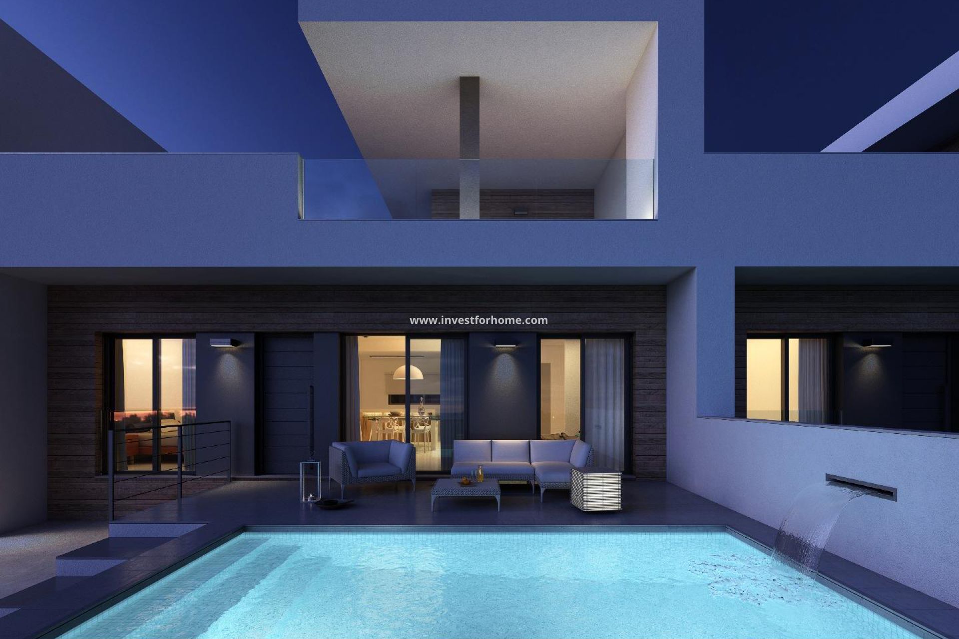 Consta de 2 dormitorios, 2 baños y un concepto luminoso, sala de estar y comedor. Todas las casas tienen la posibilidad de un tercer dormitorio con baño. Todas las viviendas incluyen piscina y parking en la parcela. Se suministra con todos los electrodomésticos.